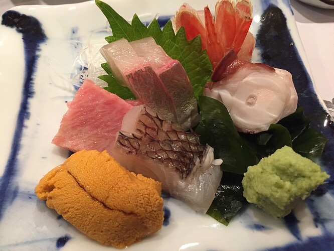 Sashimi: Santa Barbara uni, tako, ama ebi, toro, tai, shima aji