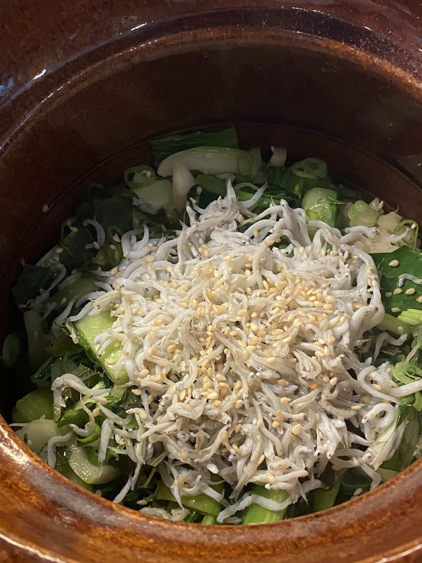 Seventh Bite: Nabe Gohan w/ Bok Choy + Shirasu + Ginger