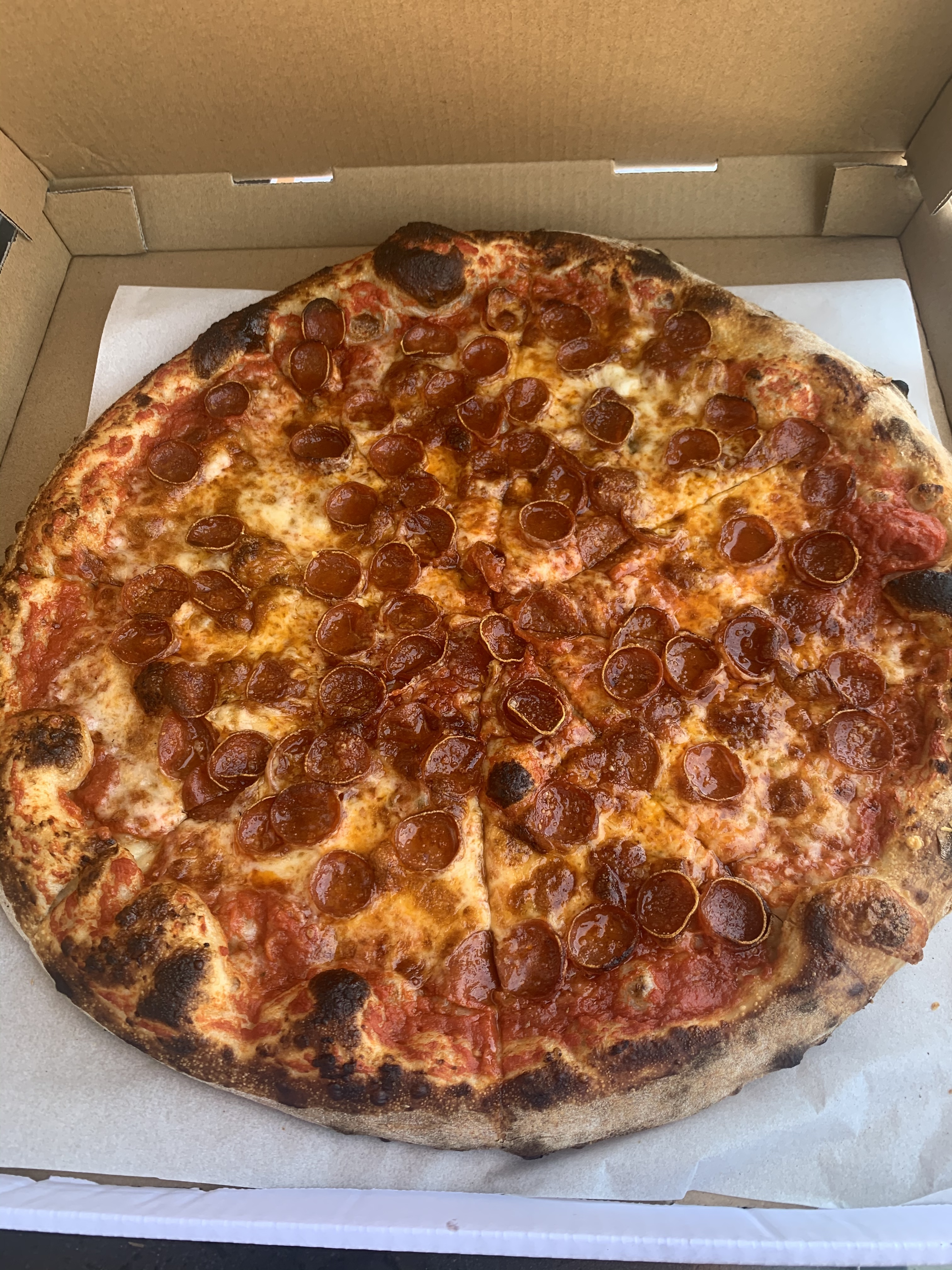 Superfine pepperoni pizza. Was it a tiny bit doughy in some places? Did we have a little soupy center? When we asked for parm did the kid behind the counter give us a half pound of grated parm? Were the grease chalices as good as ever? Did it look like he cut the pizza blind folded?