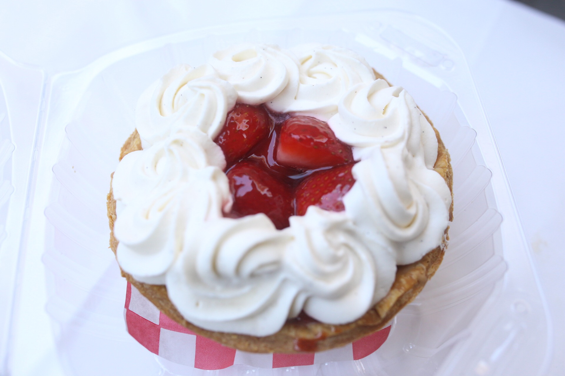 The strawberries, Mexican vanilla whipped cream, and pie crust are so delicious together! The crust is sturdy enough to maintain its texture over time as it holds the strawberry filling yet remains wonderfully flaky, as can be seen here microscopically (or close enough to micro