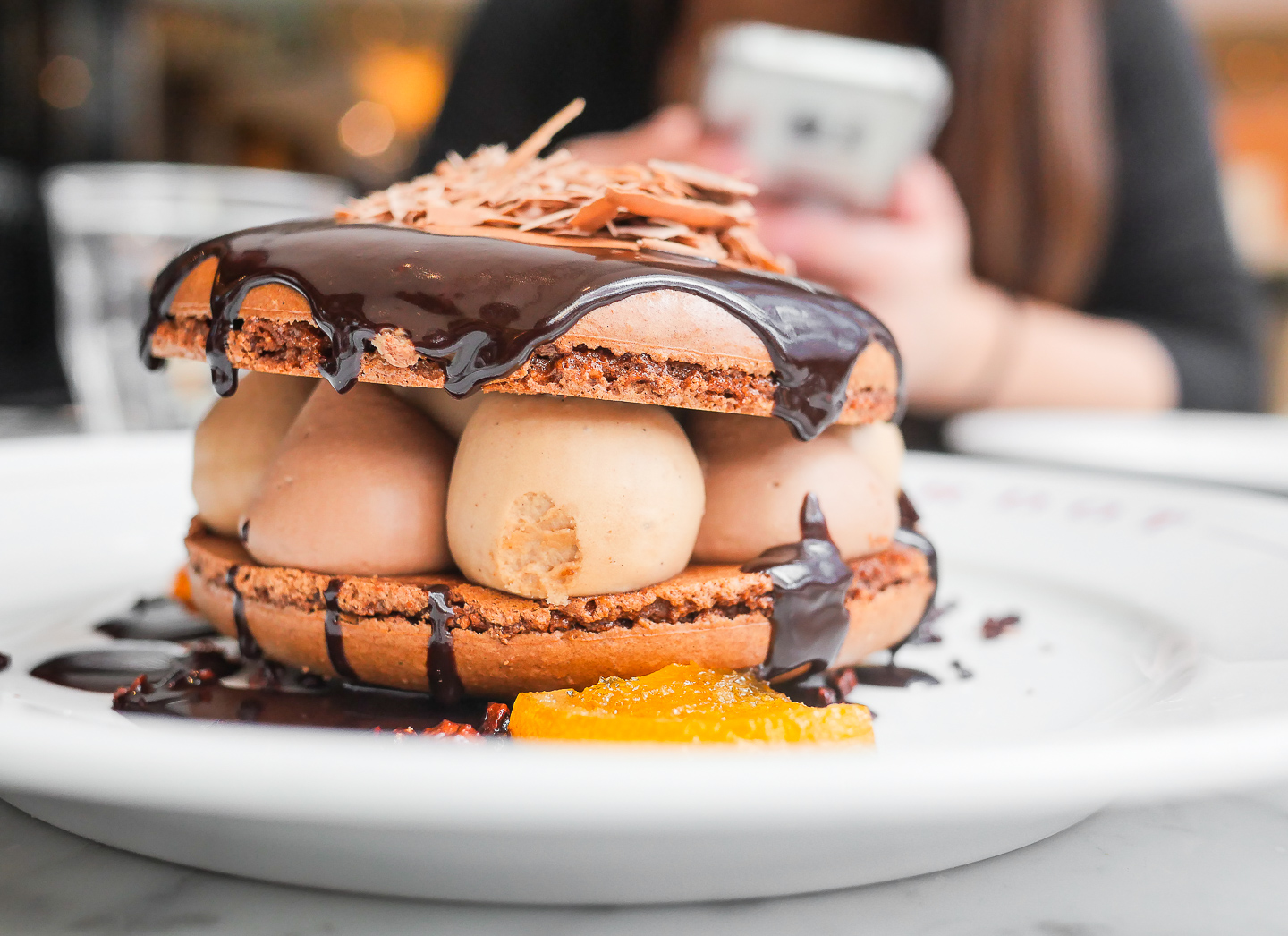 chocolate macaron | dark chocolate cookie, hazelnut & valrhona chocolate mousse, candied orange