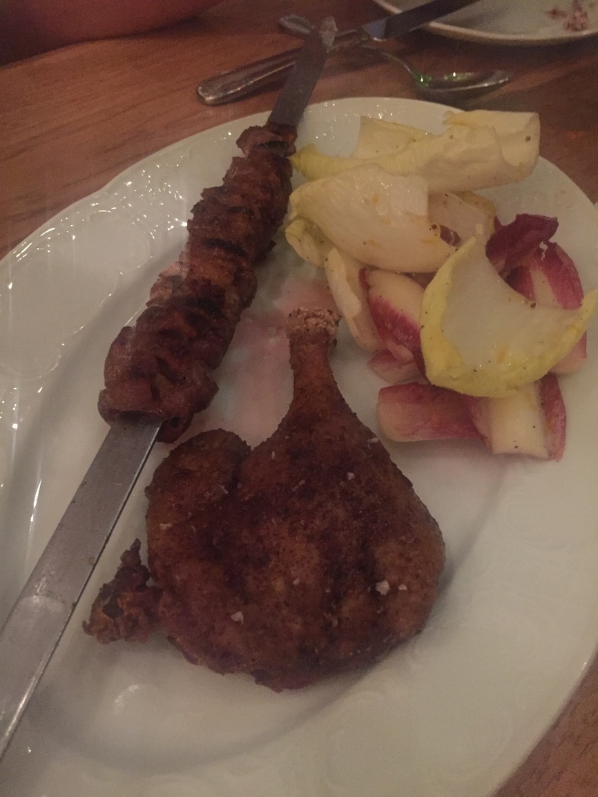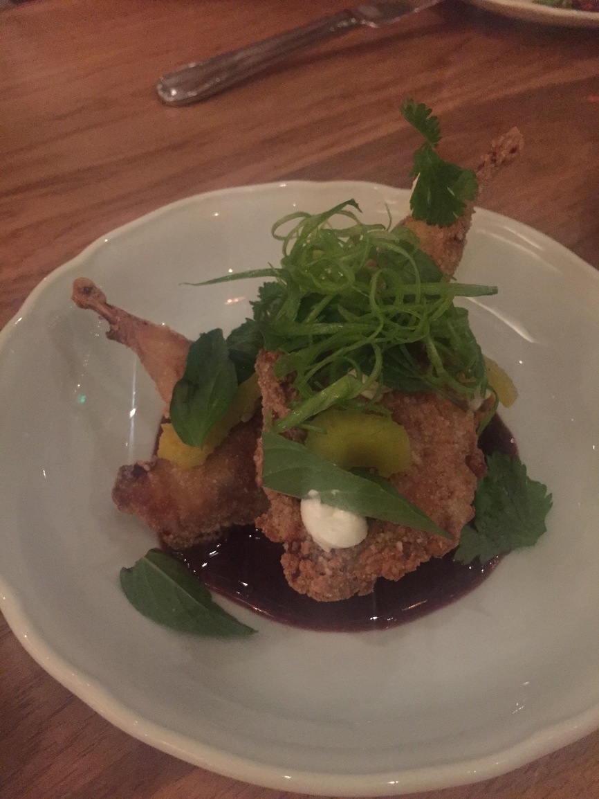 –Harissa prawns were fucking so good. Wow this is a great dish. Perfectly cooked, beautiful shrimp. Scooping up the tzatziki and sucking out the head at once is just divine. And honestly it’s simultaneously comical and great that our food scene has developed to the point where expensive, new yuppie places are telling diners to suck the heads.