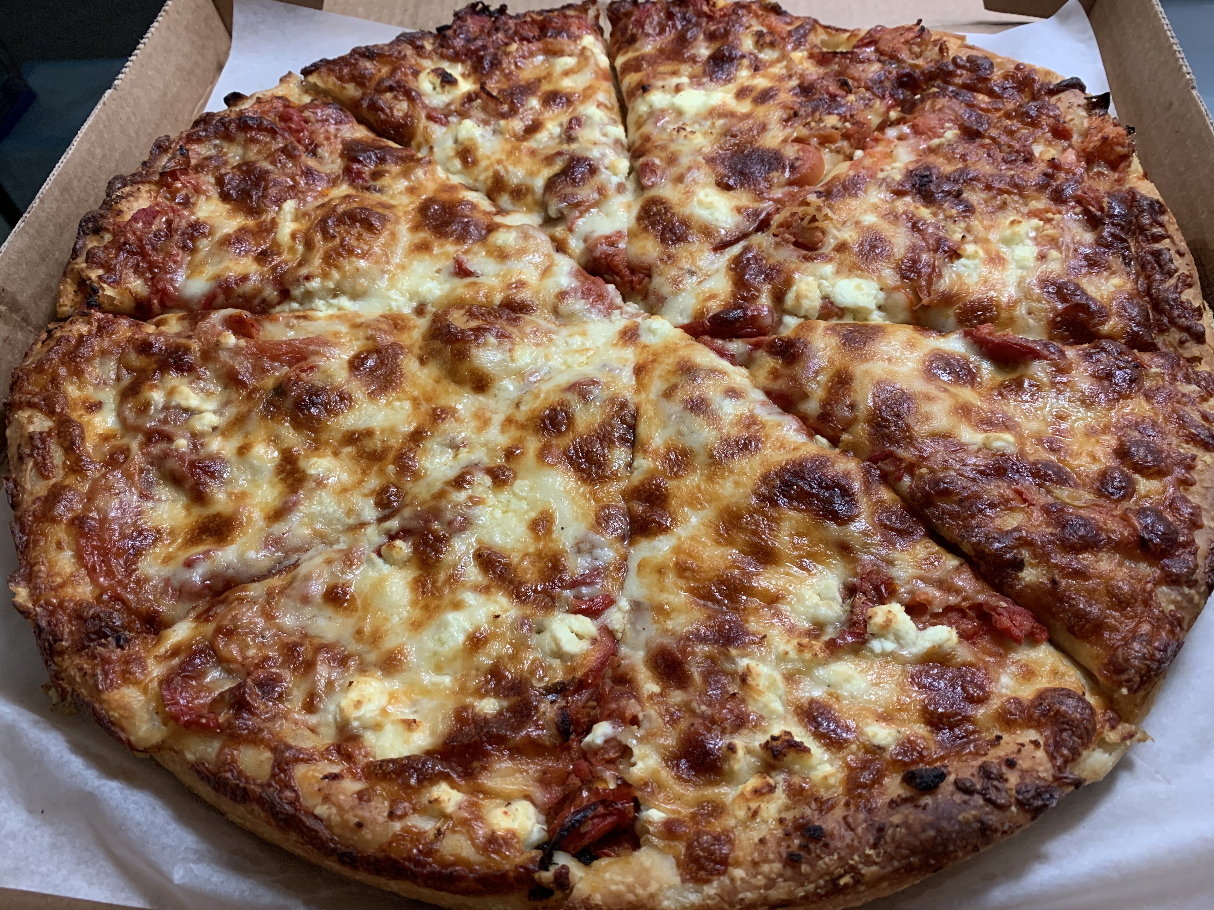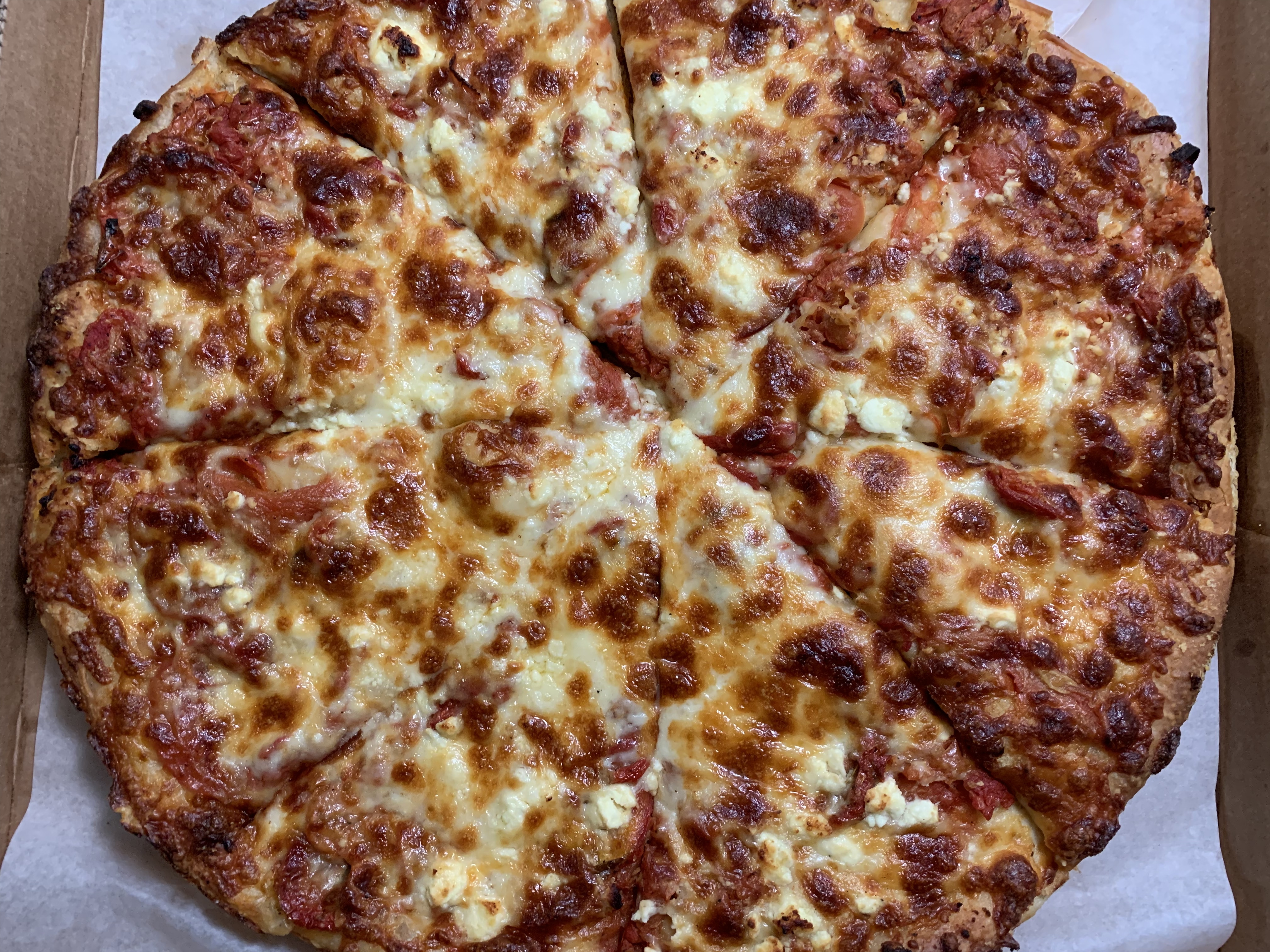 Completely not leading-edge, trendy, or otherwise newsworthy, yet also completely satisfying: a large Pizzarosa (Feta, mozzarella, parmigiano cheese with tomatoes) from Palermo’s in Los Feliz.
