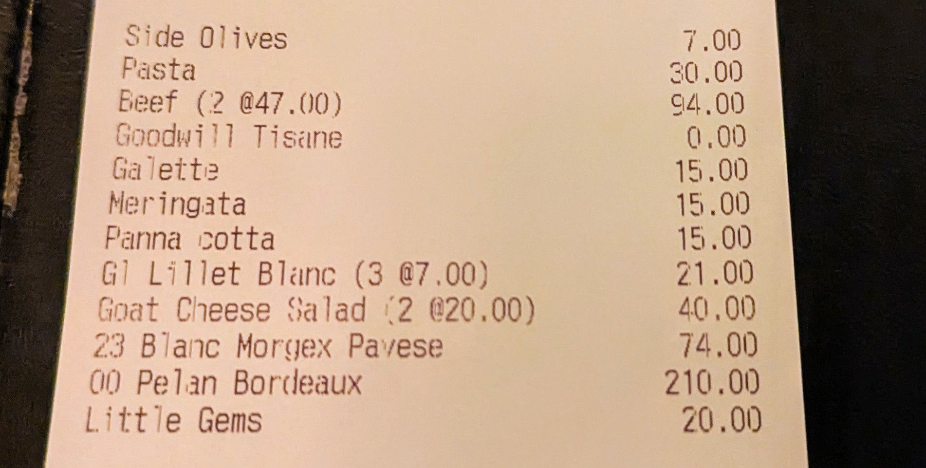 We washed it all down with a 2014 Barbera d’Alba, Pairolero, Sottimano, which went well … well, not “all down” because I figured it wouldn’t go well with ginger, and our excellent waiter delayed the dessert until we were done with it.