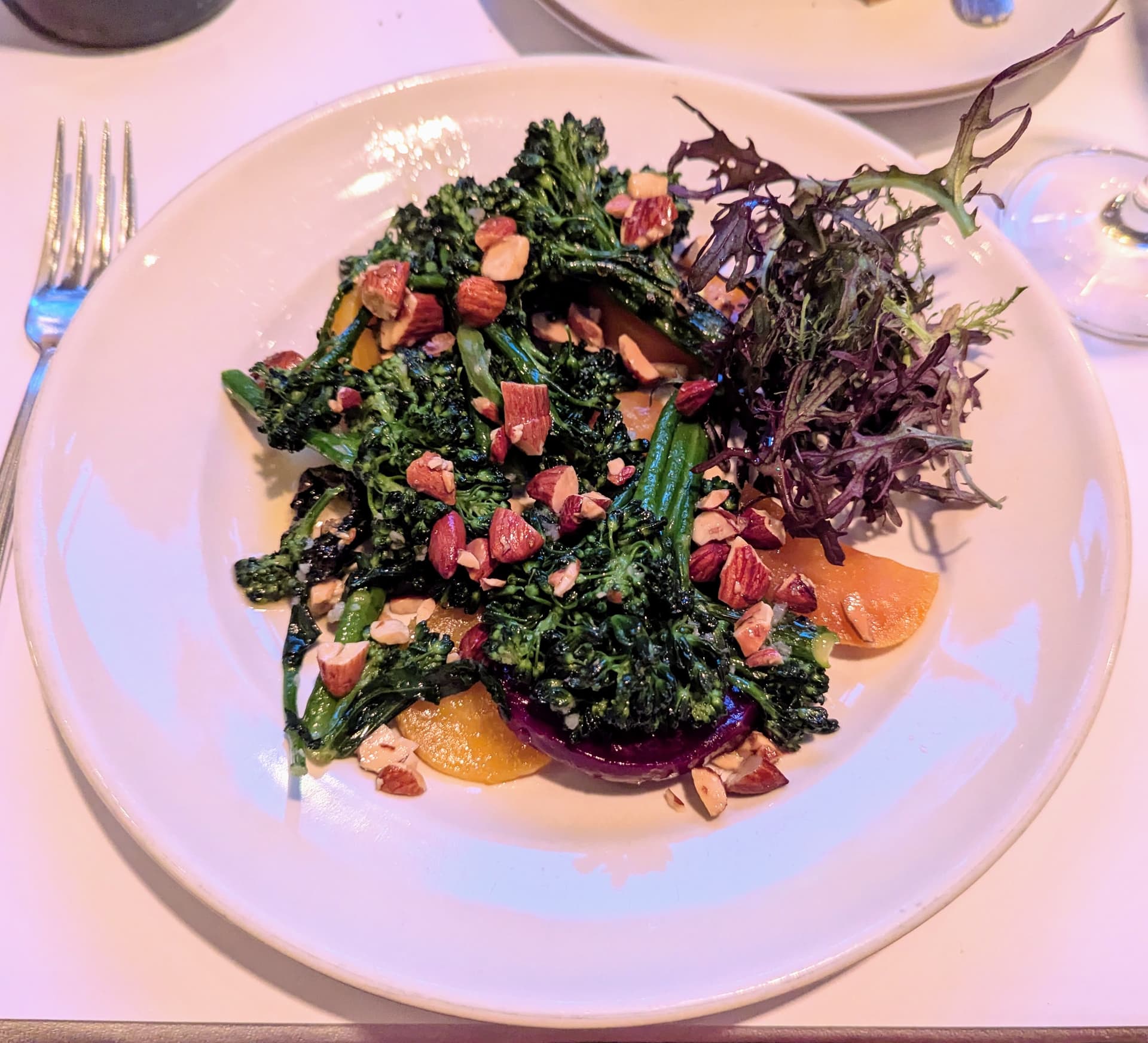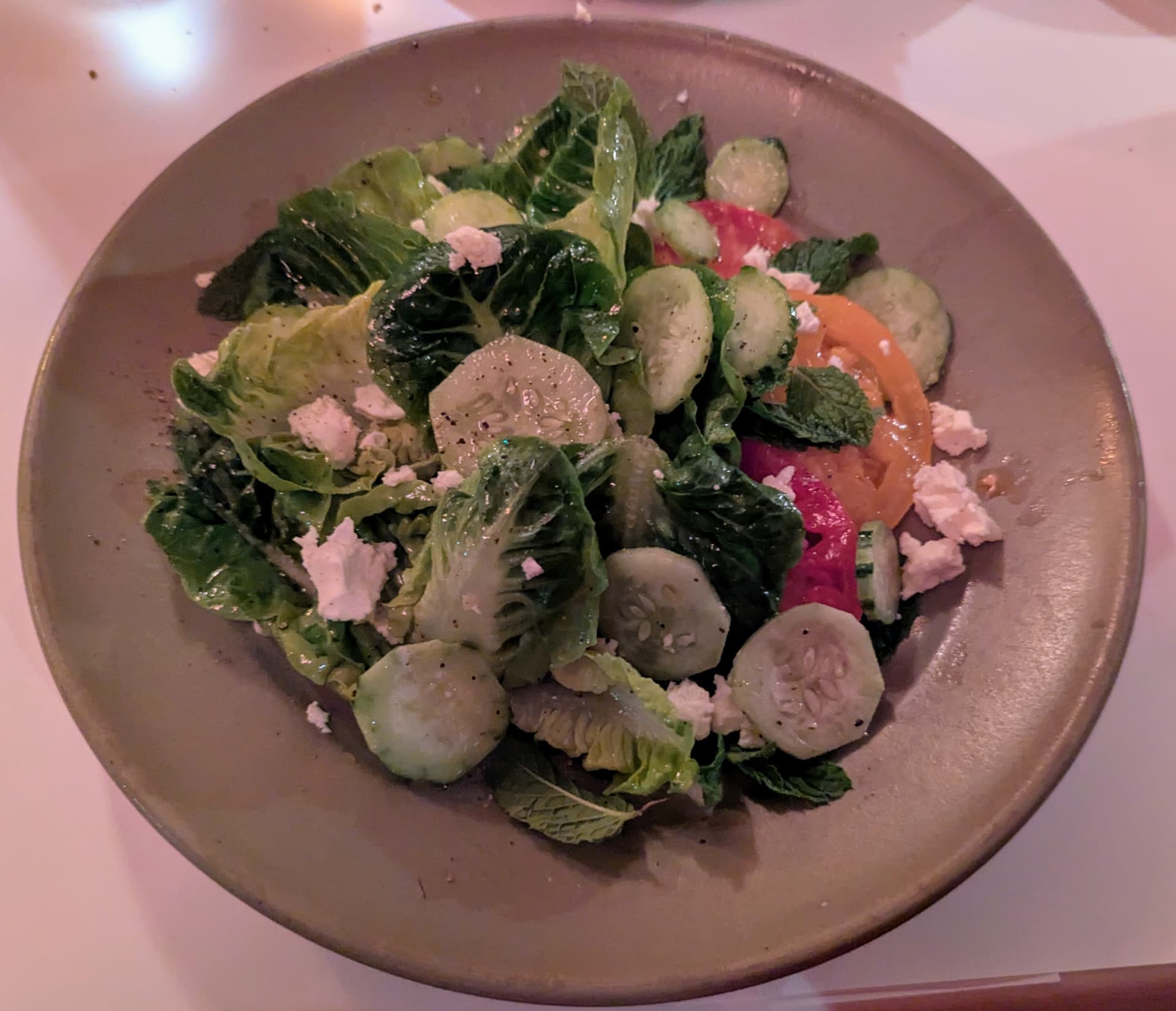 We started with the pizza, which was pleasant (generally, sausage and peppers) but not close to “pizza at its best” from this kitchen. Also, it could have used another 30 seconds or so in the oven.