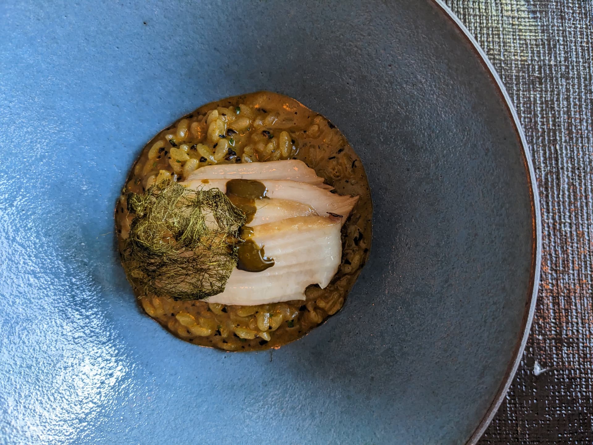 abalone risotto, sumidaya rice, preserved black truffle, gamtae seaweed