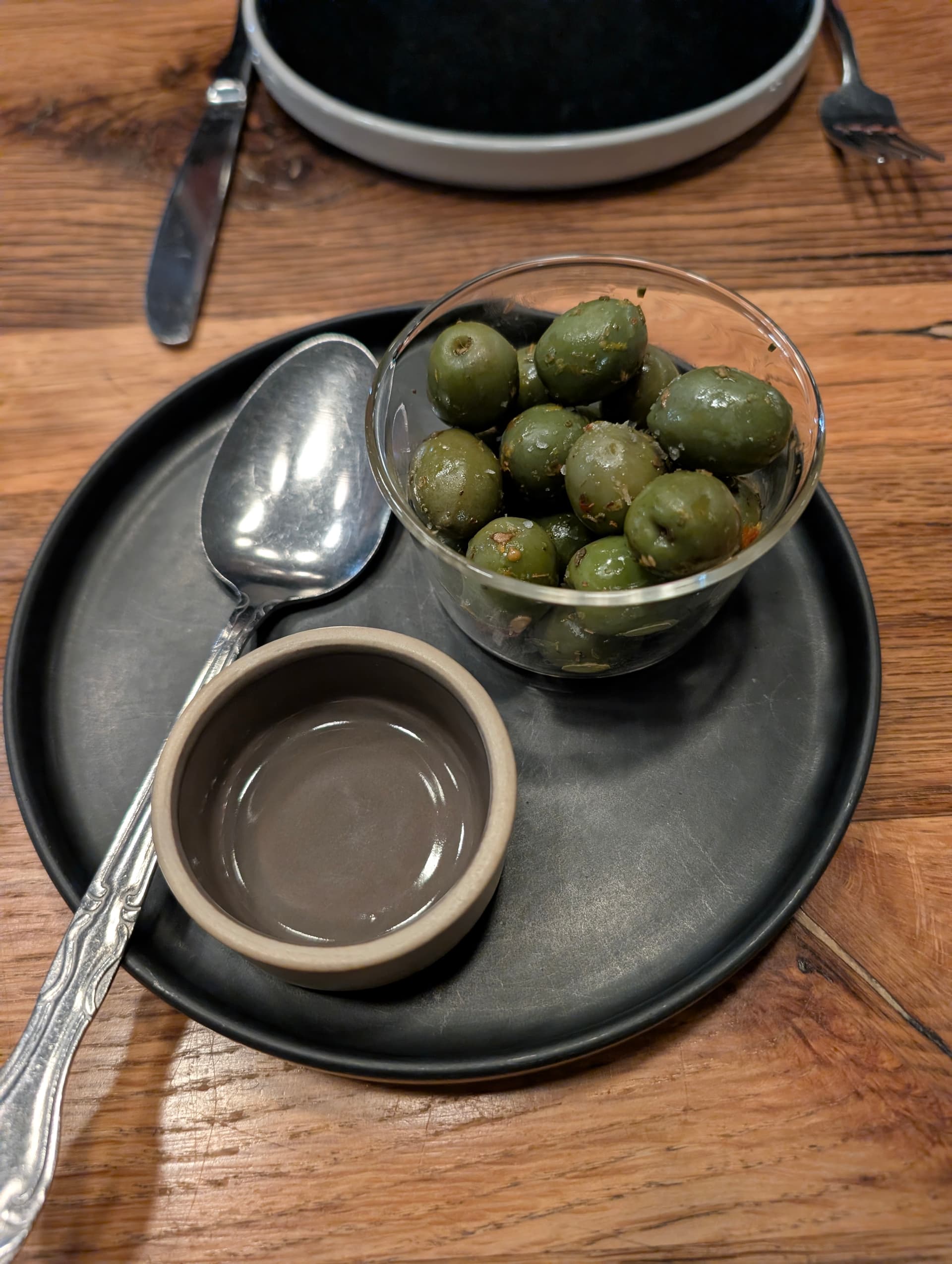 (Smoked olives with citrus. Bib gourmand-recommended. Nice bowl of olives.)