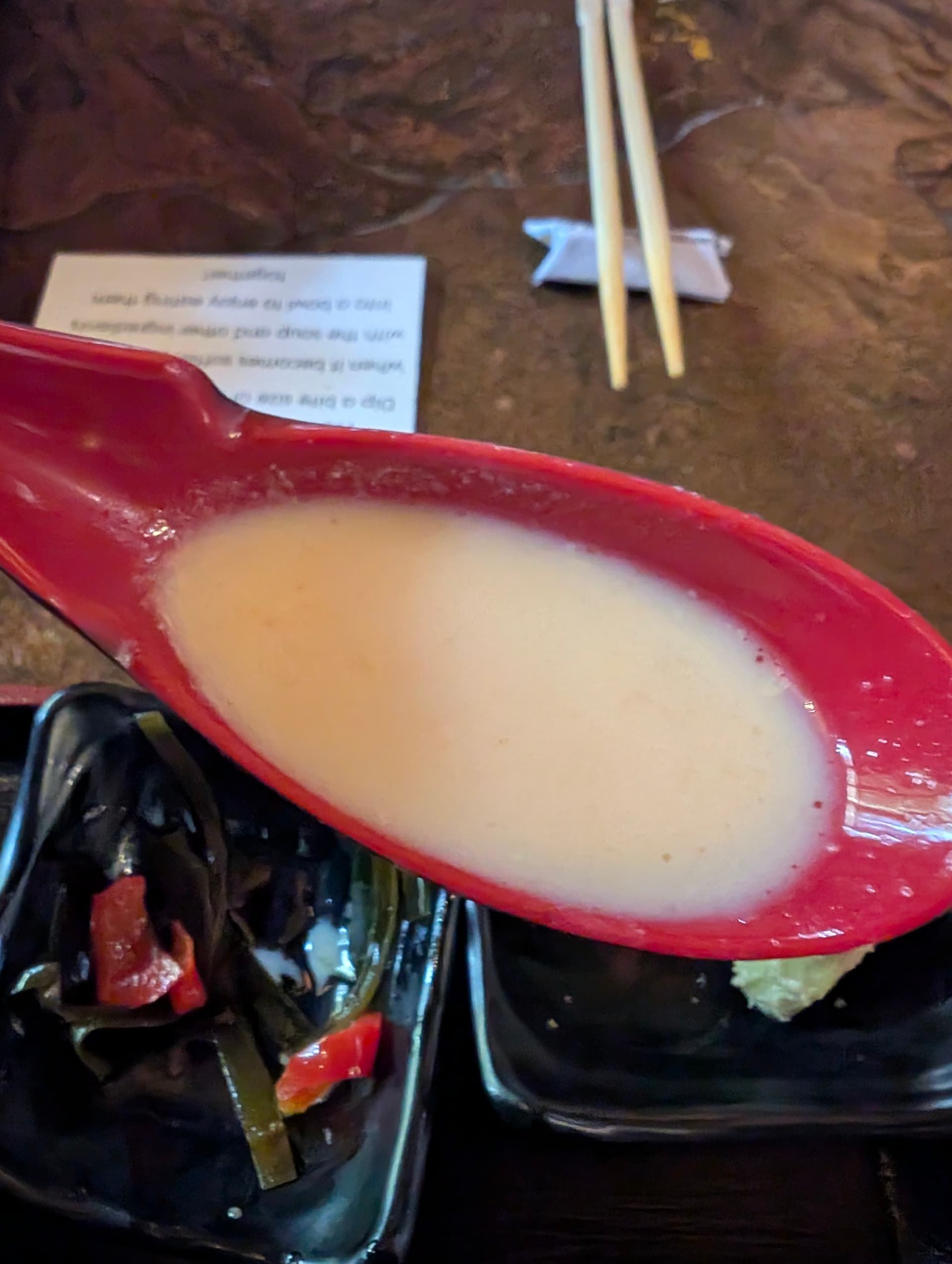 Homma and Domo don’t make any claims to culinary elegance, refinement of technique, or elevation of presentation. A sign at the front of restaurant, likely posted in response to the attention paid by the flood of “self-claimed bloggers” looking for discounts and/or disrupting patrons, advises that the restaurant is the equivalent of a greasy spoon. Indeed, as we made our way back through the restaurant after visiting the patio garden and shrines to the organization’s humanitarian work, I spied a bottle of Silk soy milk in the kitchen. In addition to the novelty of the space – an article about Domo explains that all the interior decorations are cataloged by staff, and were collected over years of trips back to Japan with his dojo – and the remarkability of it being in Denver, a city I have never associated with a strong Japanese community (though subsequent research enlightened me to how it has been a known place of settlement for Japanese immigrants, as well as Japanese Americans after internment), eating at Domo became the overall highlight of the culinary trip because I also did not expect to eat a regional Japanese dish that I have yet to find in LA.
