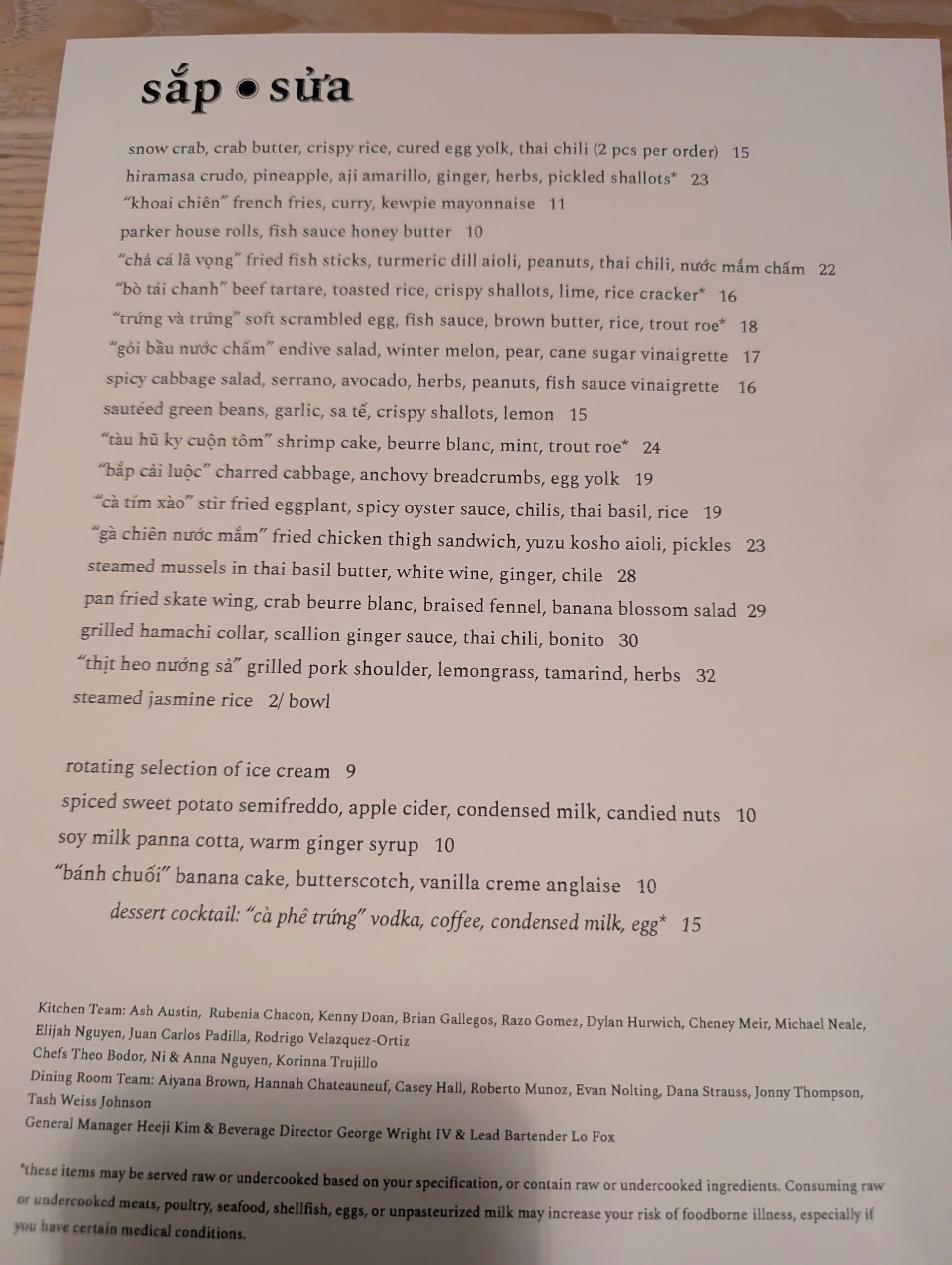 A lot of you probably already know/have heard of Sap Sua, but to be brief: Chefs Ni and Anna Nguyen have been using the "Sap Sua” name since its pop-up origins during COVID onto their full restaurant opening in 2023, whereupon it garnered a lot of national attention and some venerable first-restaurant awards.