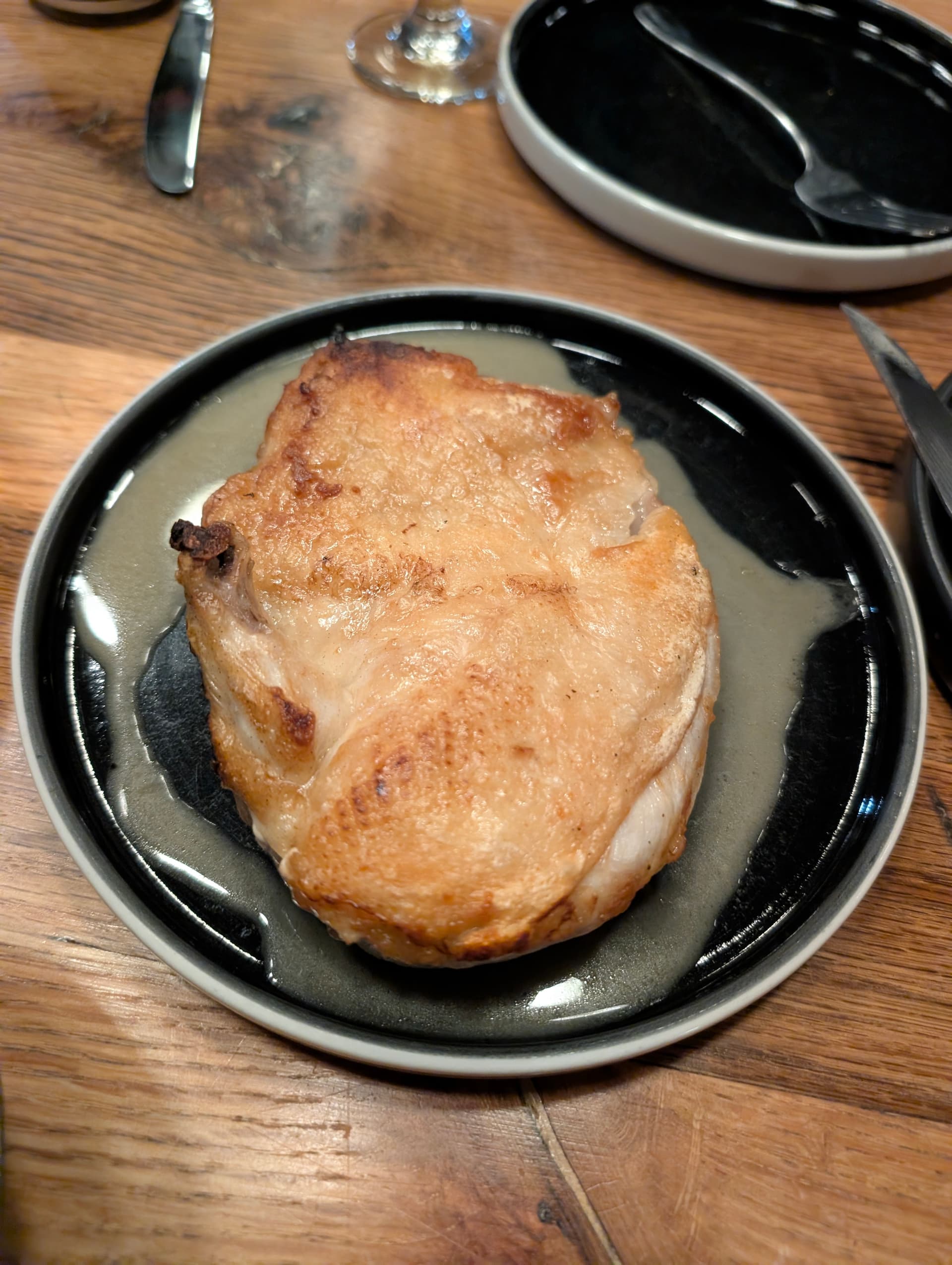 (Would have liked a little bit more color on the skin, but the flesh was cooked nicely. The jus is necessary, though I’d spilled my water into the plate; staff promptly replaced it with some more. Thanks, team).