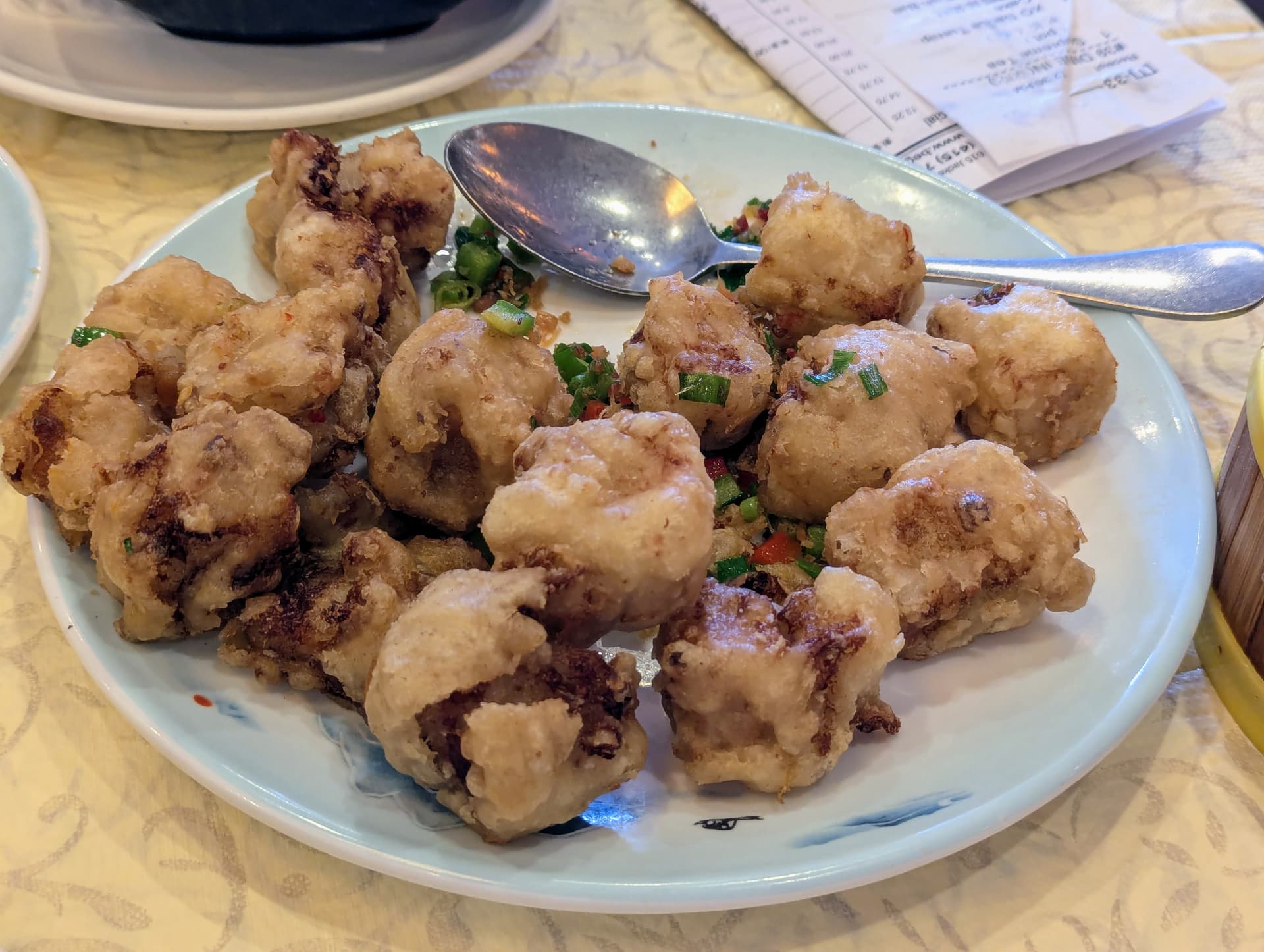 Also had scallop and shrimp dumplings and egg tarts, both good, and chrysanthemum tea. Price seemed fair for the amount and quantity.