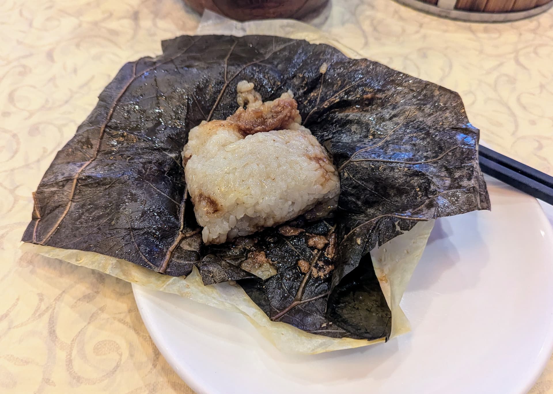 Sticky rice in lotus leaf: good.