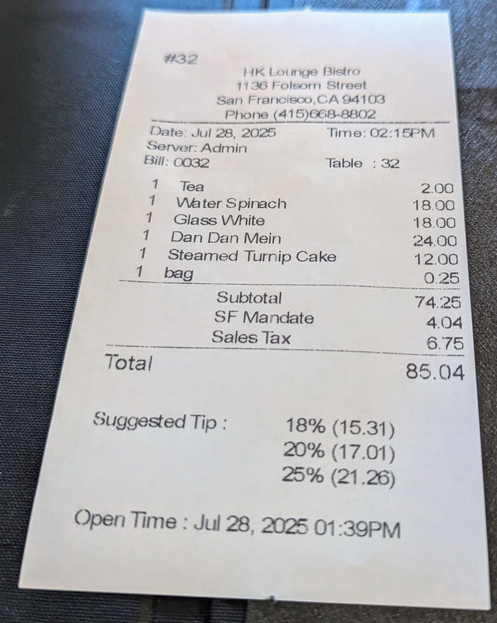 Solo lunch at HK Lounge Bistro.