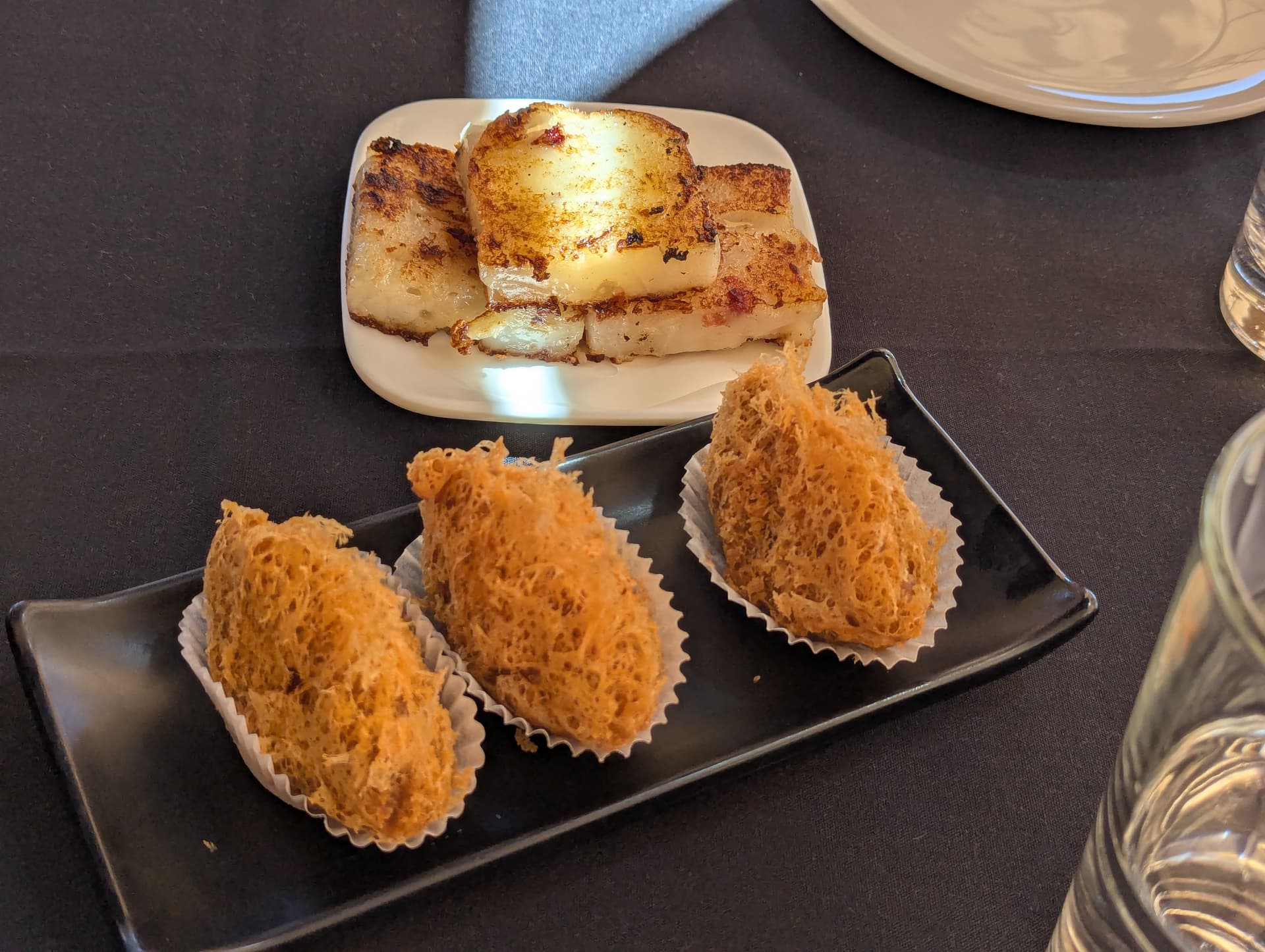 XO sauce turnip cake: I thought these would be regular turnip cake but no. Kind of a mochi-like texture. Needed more XO sauce. Was better at home reheated with more XO sauce.