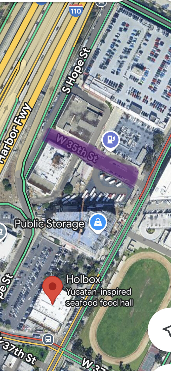 I was scoping out to see if thereās any other exits to the lot so I watched another car try to leave. Poor sedan tried to go for a gap between the curb berms near W 37th and Hope St that looked like it fits a car, but looks like is just a straight drop down to the street, not graded at all. The car eventually made it out but it did not sound good. I guess itās one way in, one way out at that lot ā¦