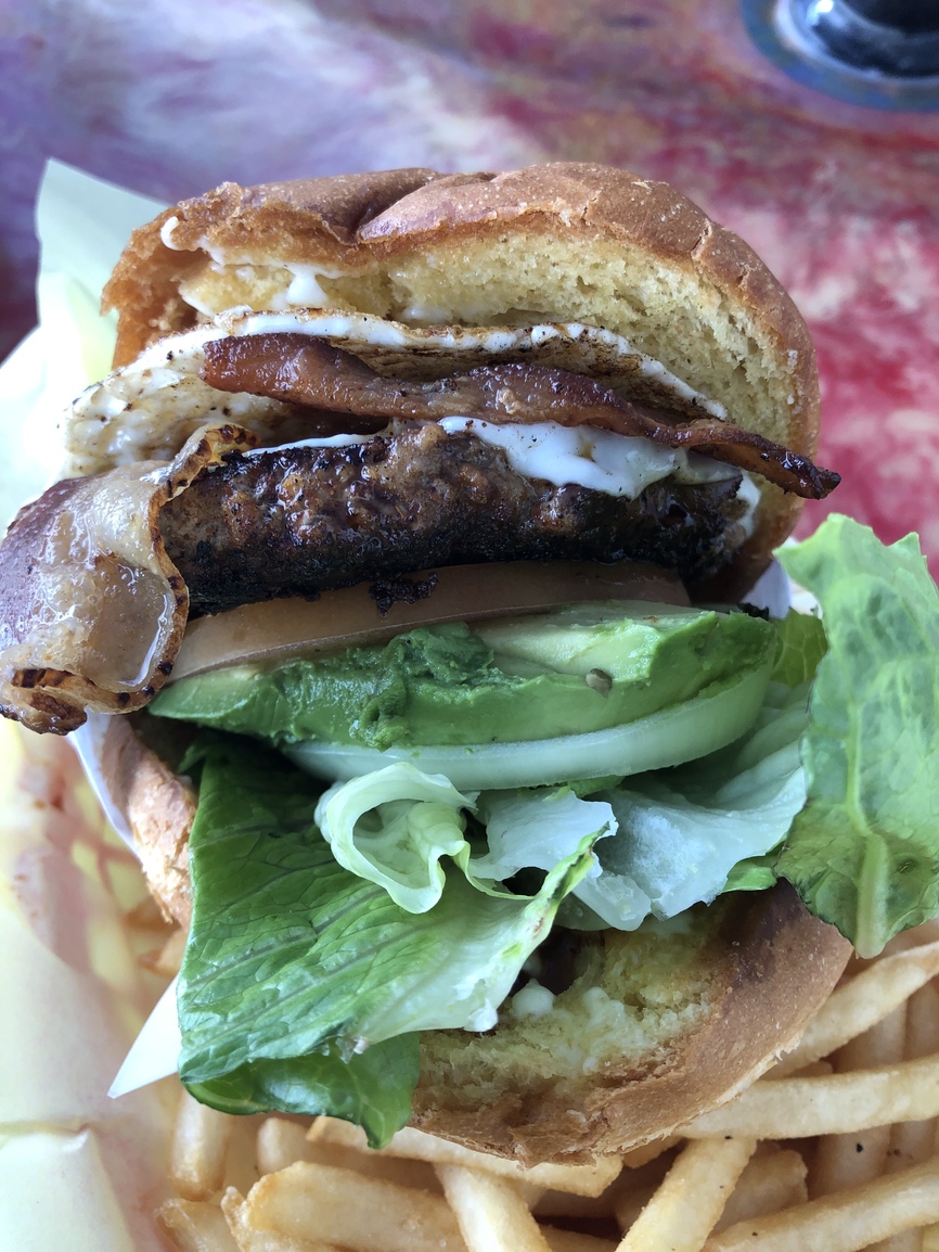Went to the Pocket Burger Shack in Sunset Beach (in between Huntington and Seal). Not gourmet or fancy by any means but very fulfilling with bacon, egg, avocado, juicy patty, and sauce.