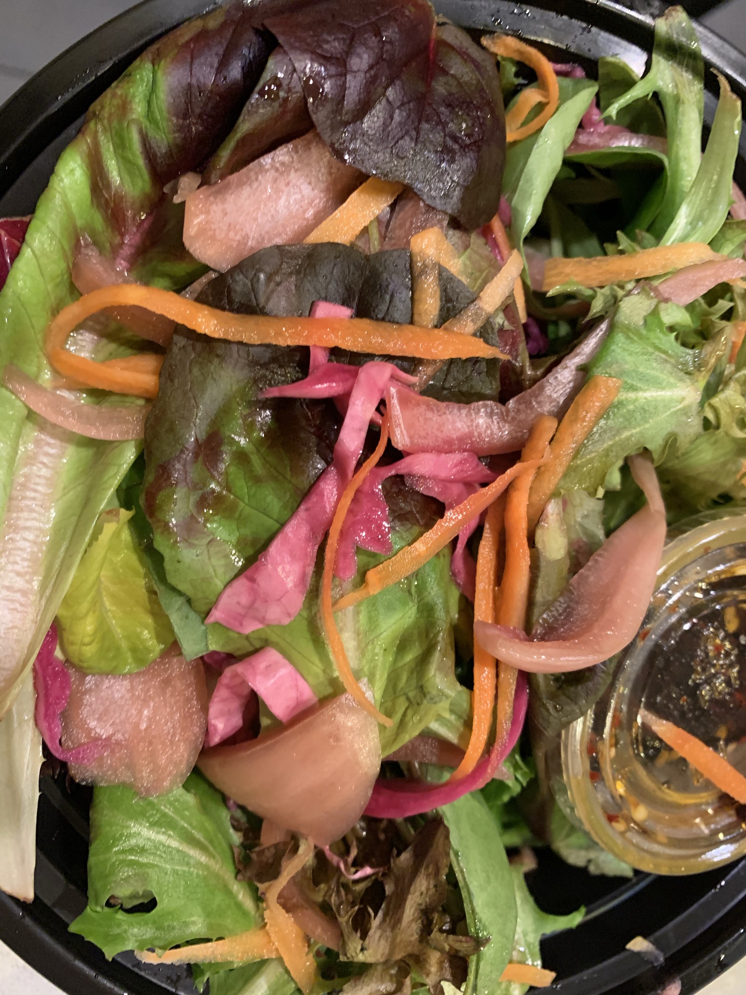 Falafel plate with pretty large falafels. These were super light, I do prefer them denser, but really nice flavor with just the right amount of spice.