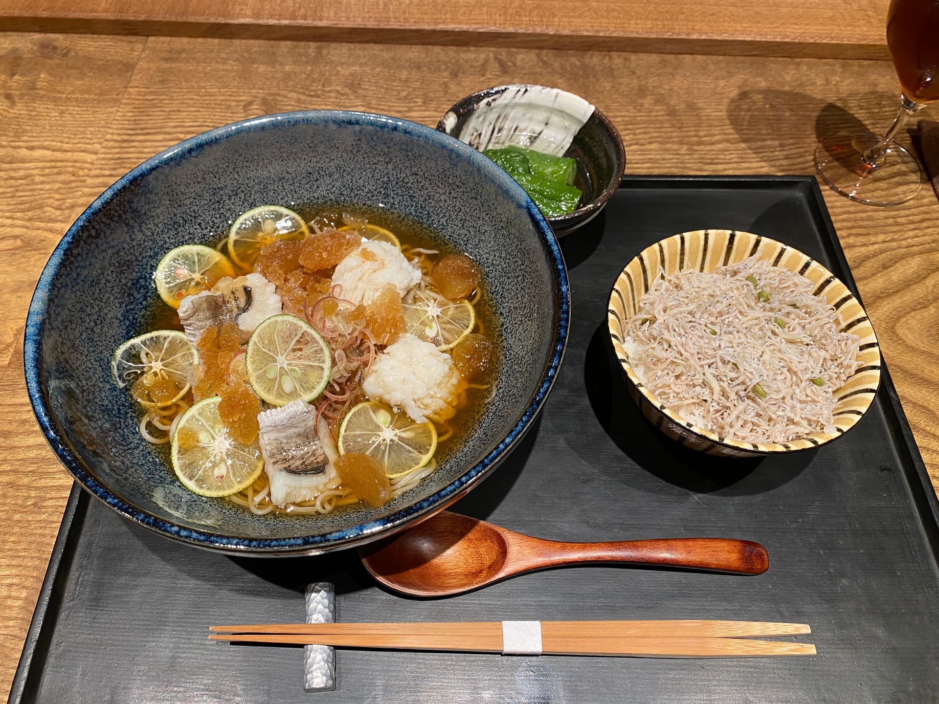 One of the two lunch sets at Jō NYC: Hamo sudachi soba.