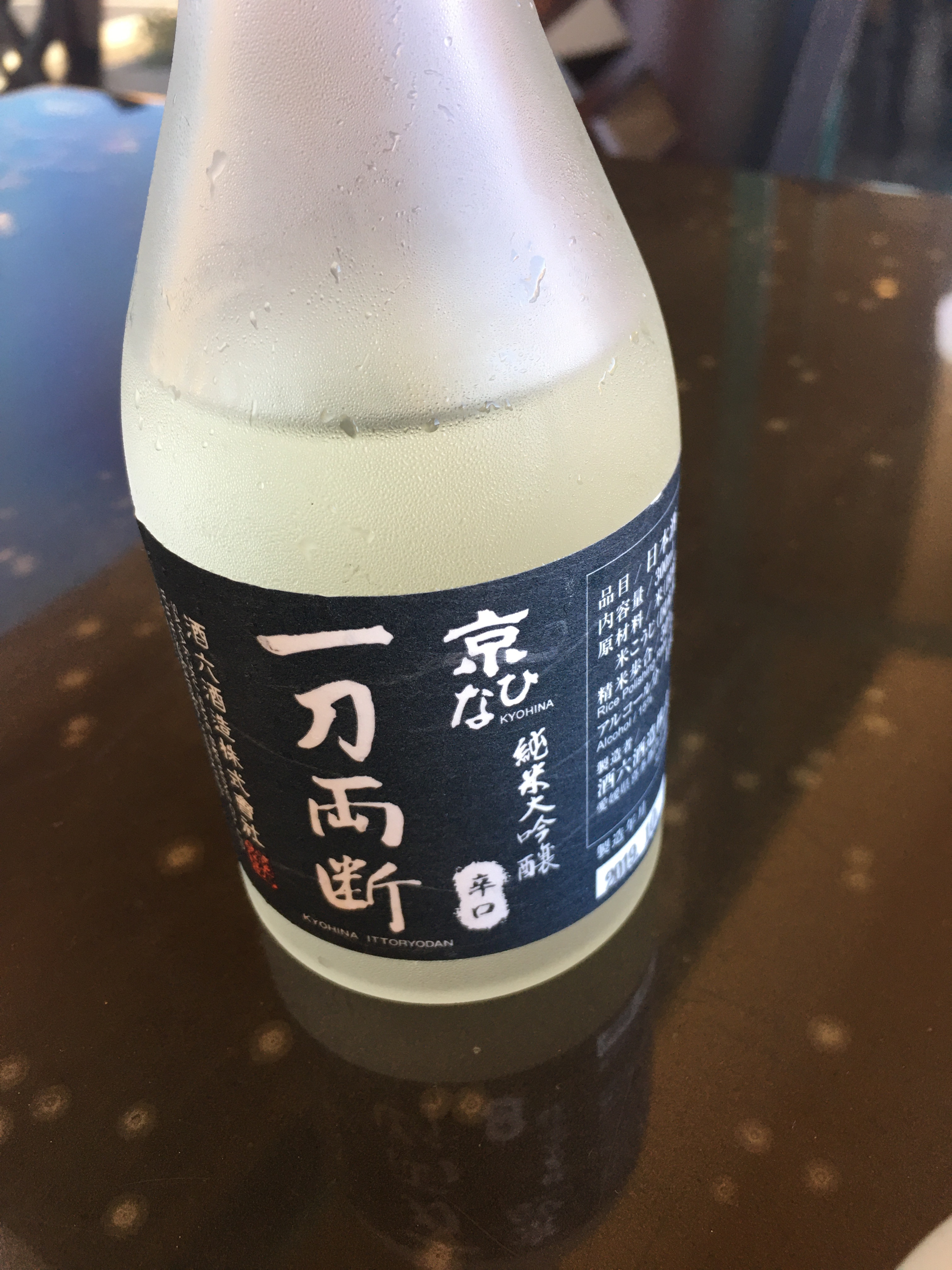 Ordered a small bottle of Kyohina Ittoryodan Karakuchi Junmai Daiginjo. Pretty darn good, nice honeydew nose and upfront taste with a smooth dry finish, perfect with the hikarimono and summer heat for me.