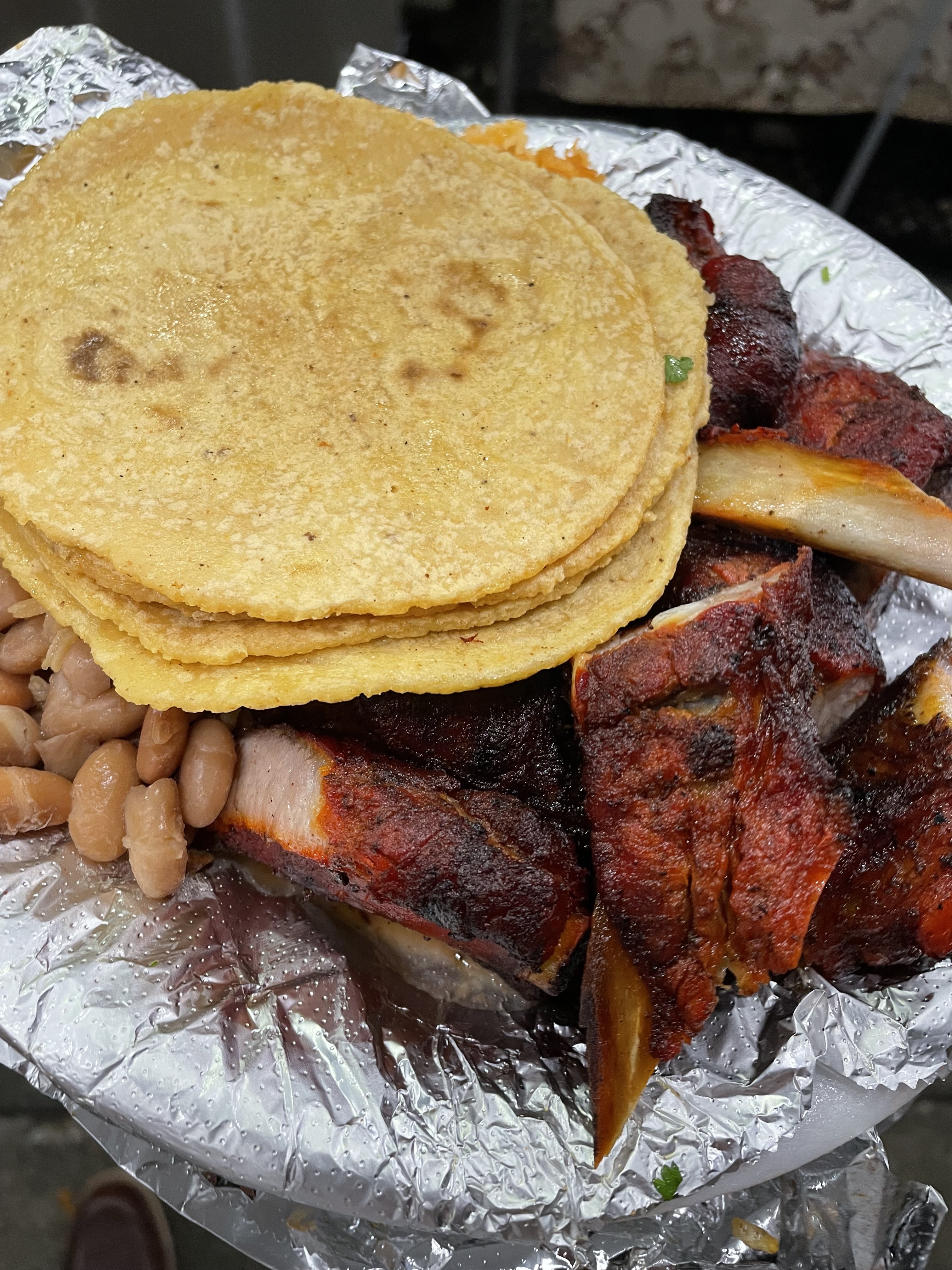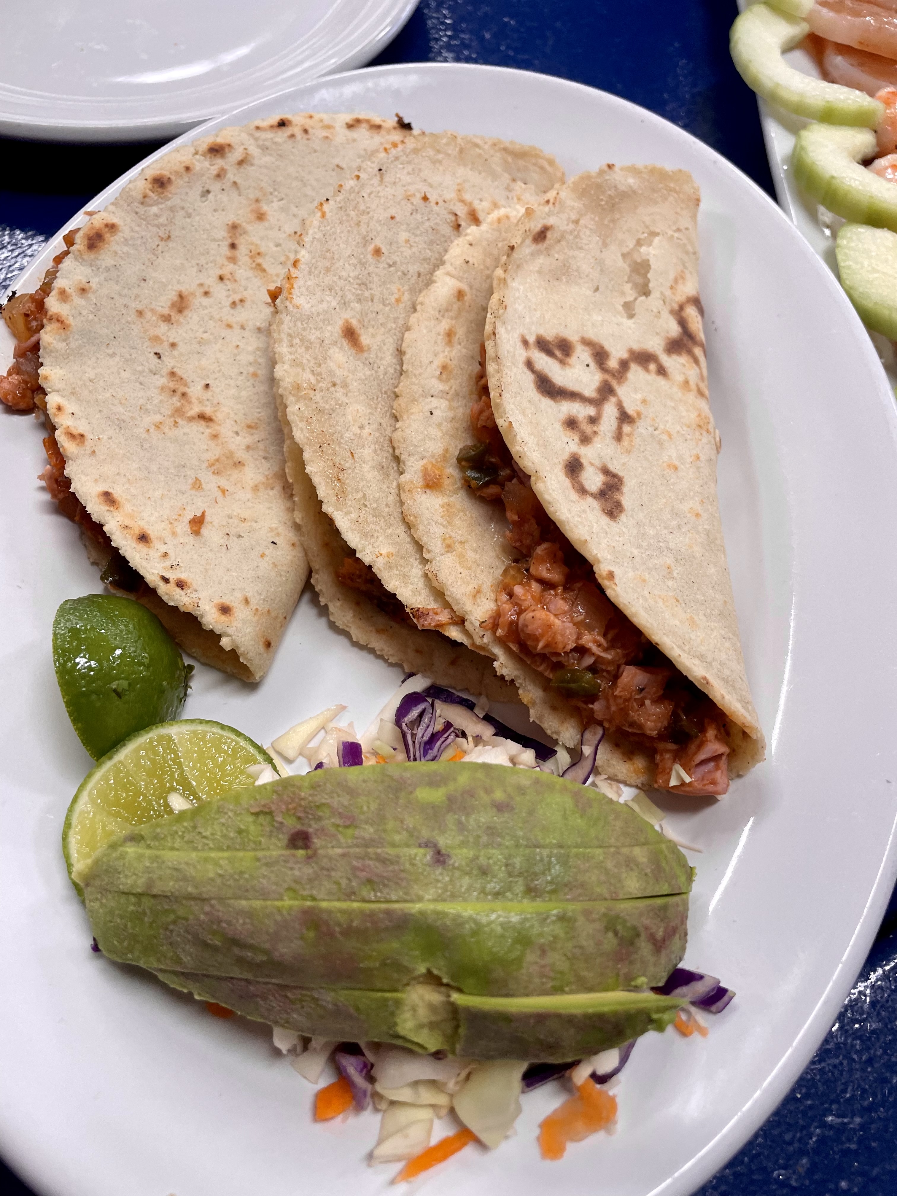 Why are these gorditas de chicharron prensado not a thing? Fresh, handmade gorditas filled with chicharron prensado, onions, cilantro and cheese and crisped up a la plancha and served up with a delicious salsa verde and a pretty fuckin spicy salsa roja. It was my first experience with chicharron prensado and I wish I had discovered it sooner. What makes it even better is the tias making them fresh to order.