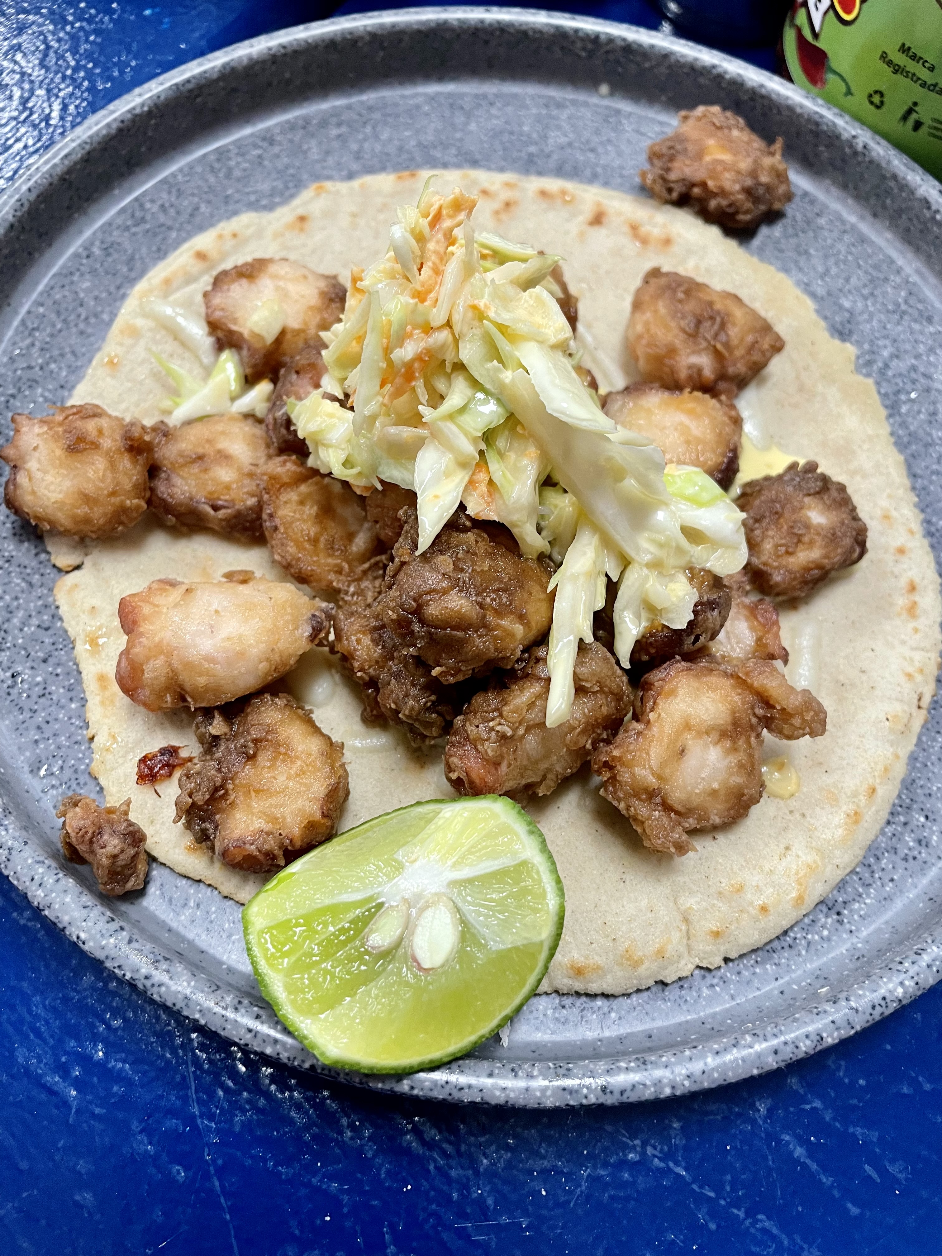 Chicharrone de pulpo - crispy octopus in a taco?! The slaw on top was cooling and a little sweet. I’d prefer this over a fish taco from Ensenada.