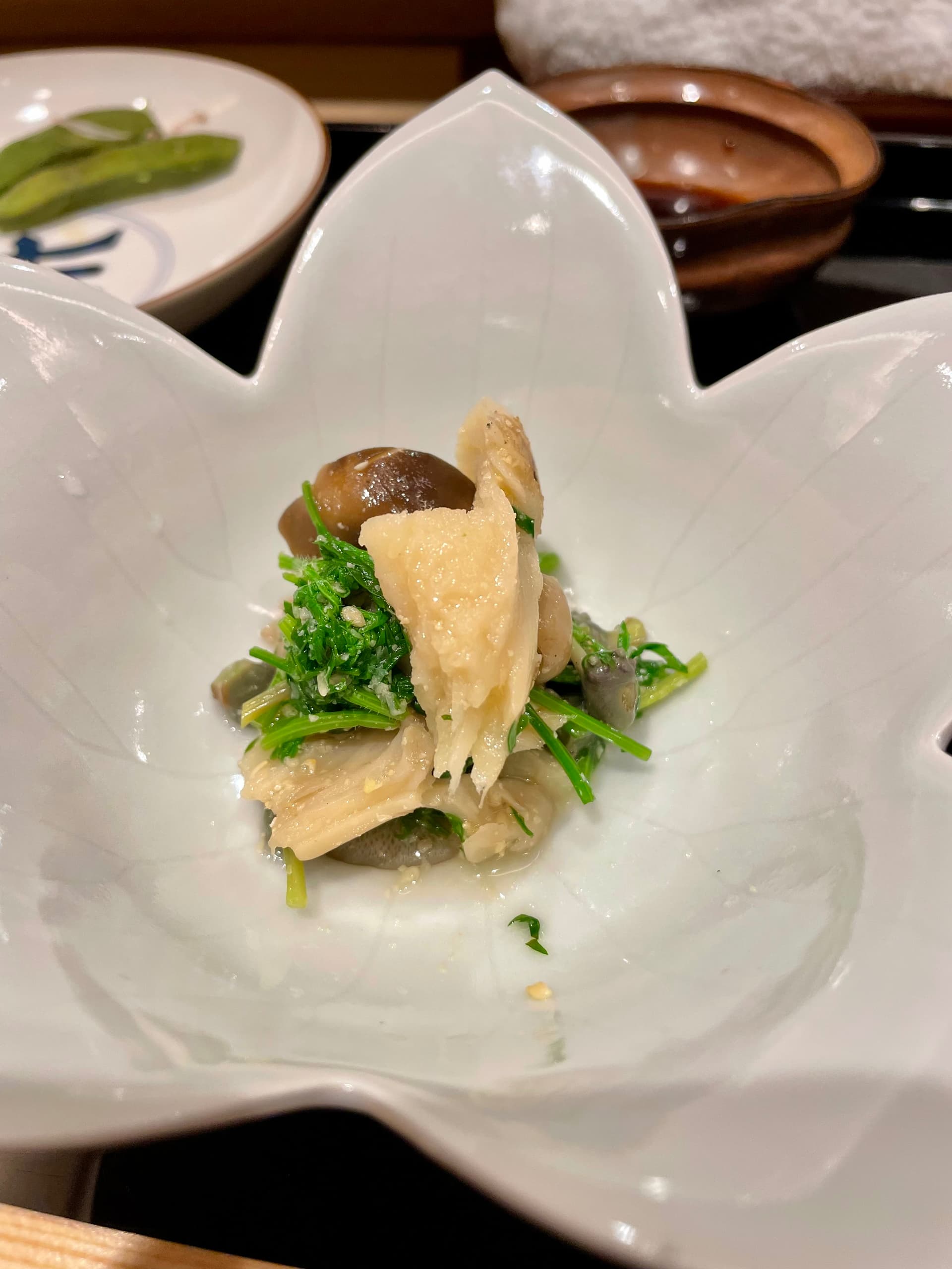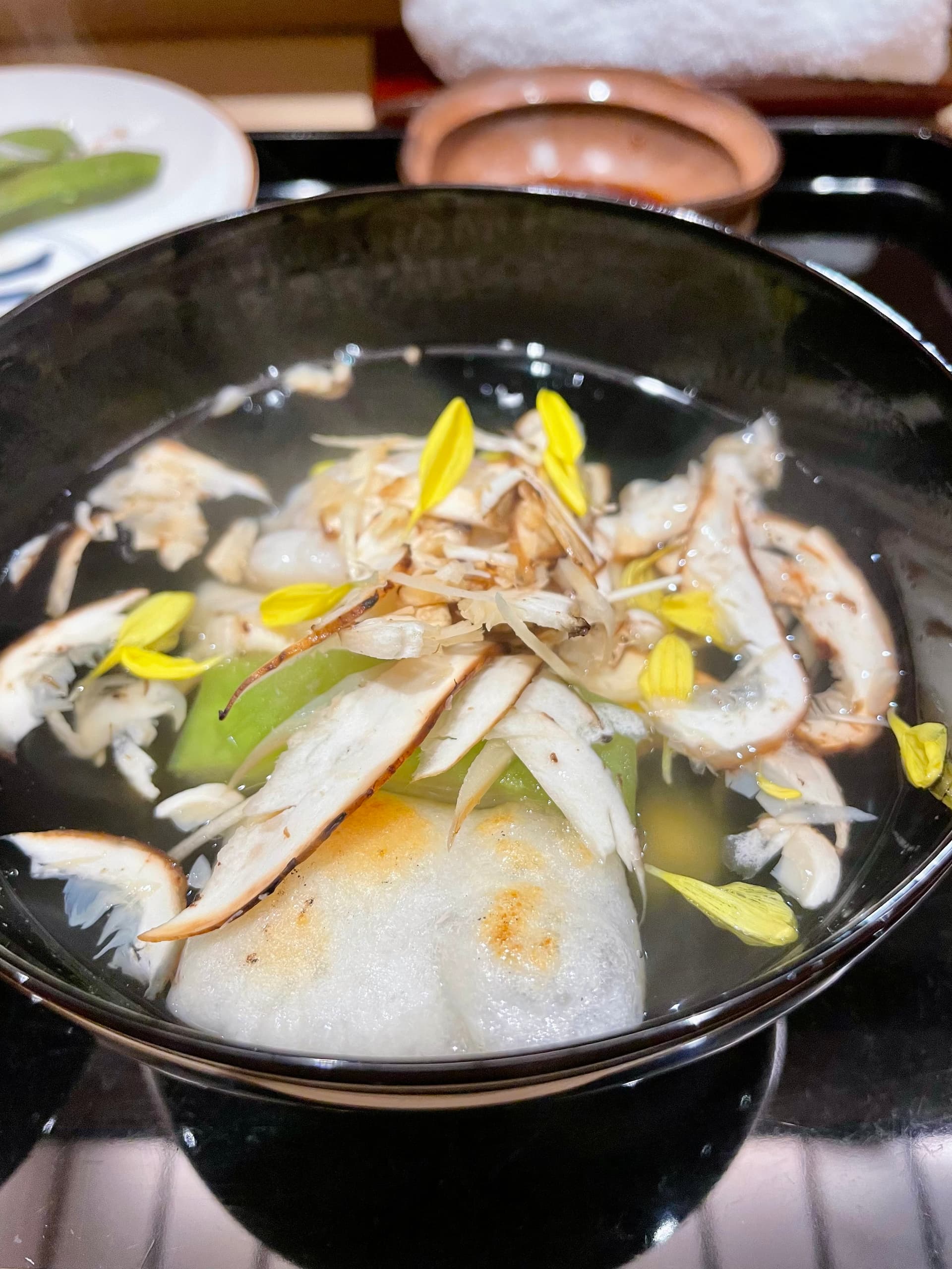 Everything was just spectacular. From the opening yubu soup to the sashimi course to the celebration of matsutake mushrooms to the excellent tempura to the salad of local greens to the grilled fish with specifically selected local rice that chef cooks just a touch over because he prefers it that way. Photos are in a random order.