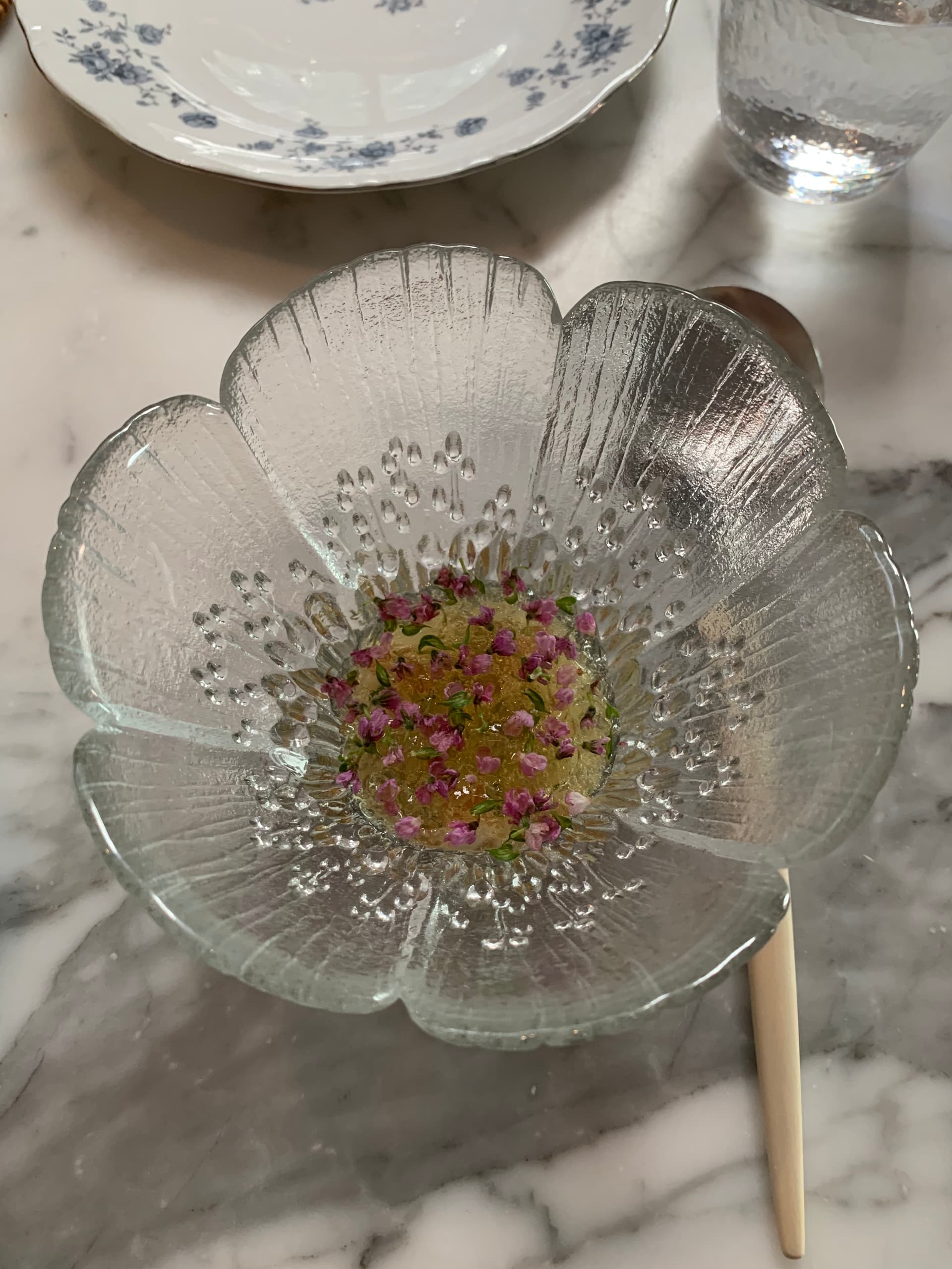 Went to the bar at Kato when they opened today and had everything from the a la carte bar menu, with the exception of the crab rice. Apparently they mix the crab fat with uni (which my wife has a mild allergy to). Everything was excellent including the cocktails. Bamboo cocktail is very interesting and savory, the sloe gin fizz is a fun experience and tasty, but light). Wife liked her Bamboo more than the Bee’s Knees with sansho pepper, which could maybe have benefited more from more numbing sensation. We both like the Verbena at the Chandelier bar at the Cosmo in Vegas which has a Szechuan peppercorn flower.