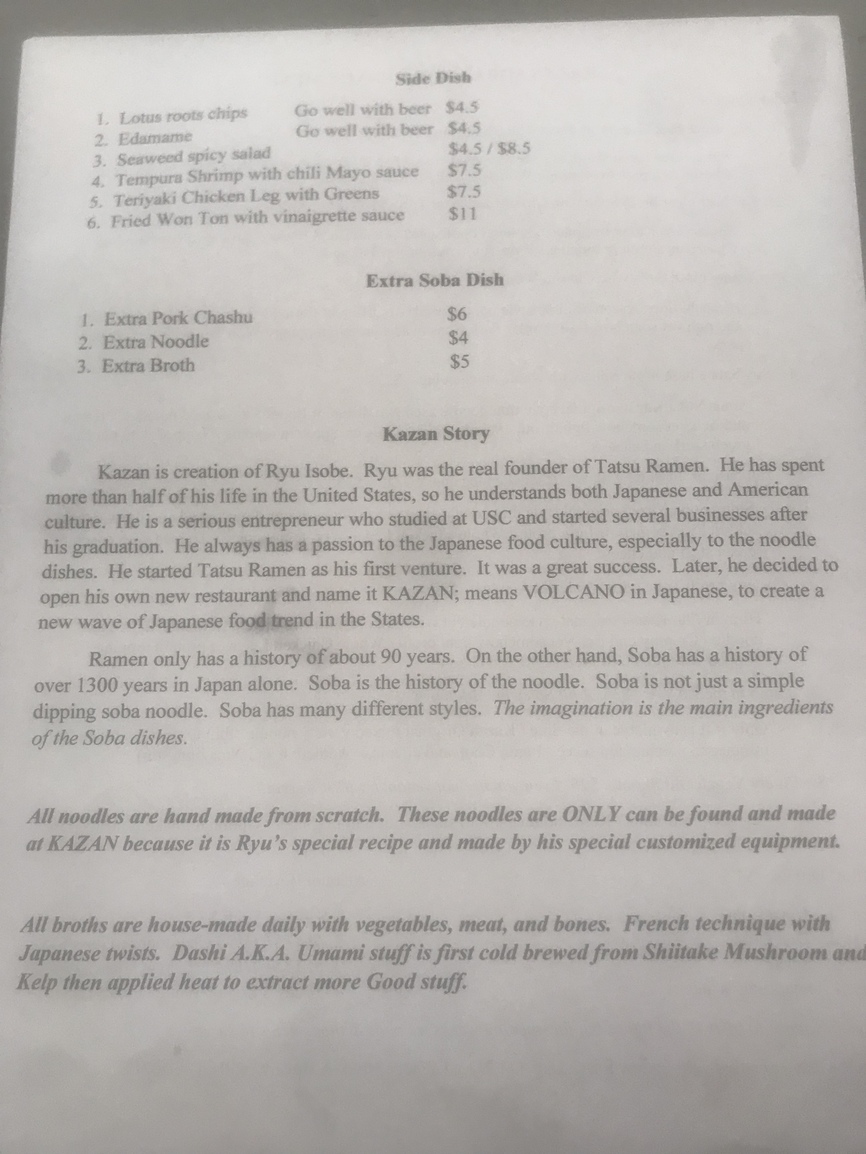 Curiosity got the best of me, and I made my way to Kazan. They are situated next to Matsuhisa in a brick red building. I was there for lunch, and the place was empty except for a family in the corner.