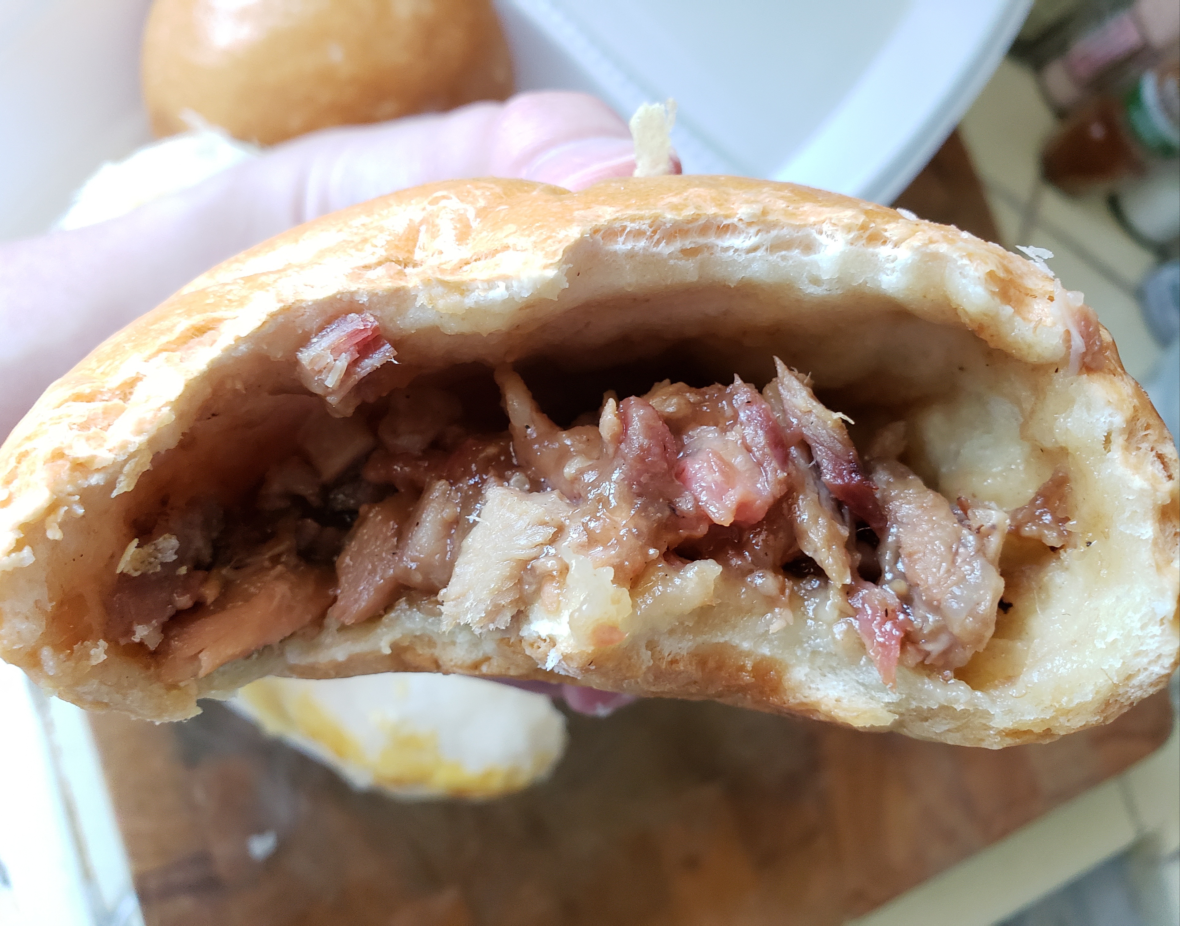 Salted egg yolk stuffed char siu. Apparently it’s been a thing in Hong Kong and Southern China…