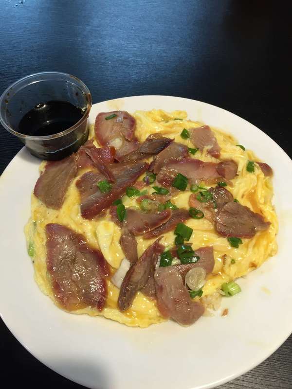 Triple eggs, more special soy sauce, no veg. Blue plate special
