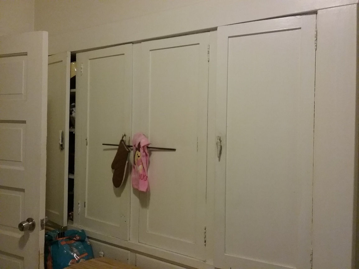 I have a good sized kitchen but alas no pantry and not a lot of eye-level shelving. It’s a catastrophe waiting to happen. Maybe pull-outs for the lower cabinet next to the stove?