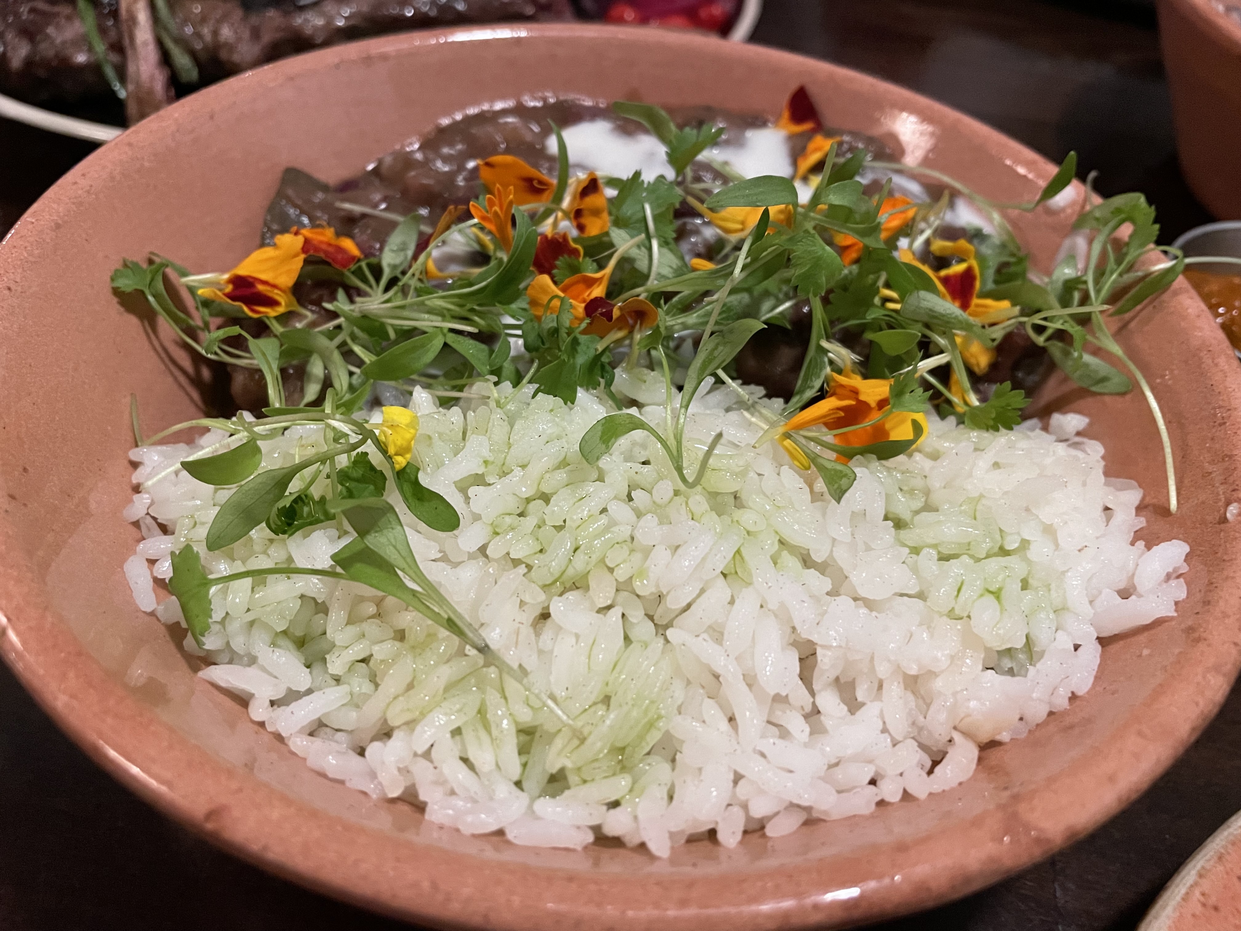 For the main we got the ribeye with yeasted butter, very tender and flavorful piece of beef. The trio of sauces included a tangy chimichurri that paired well with rich beefy flavors of the ribeye. Accompanying this we ordered “mama’s” rice and beans which were fantastic. Very flavorful beans cooked with pork and garnished with marigolds.