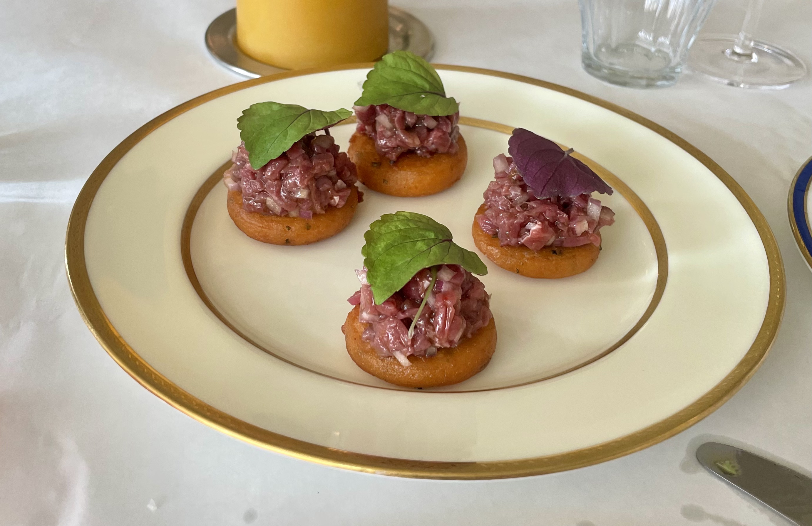 Loved this tartare served on a hot panelle, garnished with shiso. Sometimes tartare feels boring, but this was arguably the best bite of the meal.