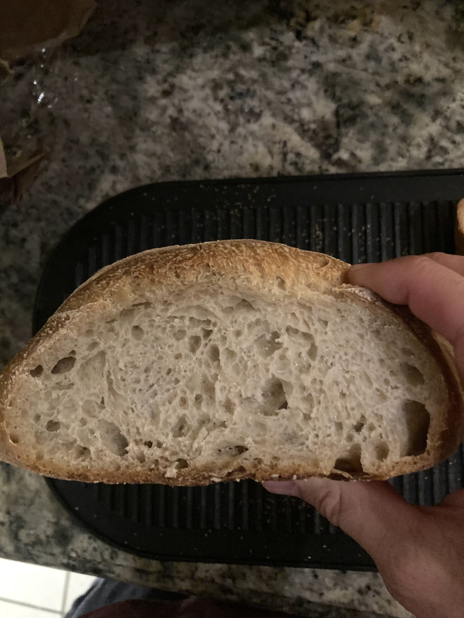 Decided to get some items from FKN to go. The only loaves they had left were day-old (and still quite good). My loaf is not TOO far off from this, but their crumb is so soft w/o being wet. Not quite dry enough for the croutons I made later that day.
