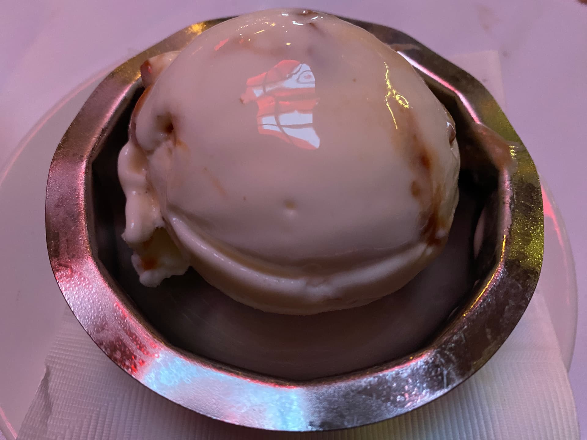 Goat’s milk ice cream with armagnac toffee and walnuts