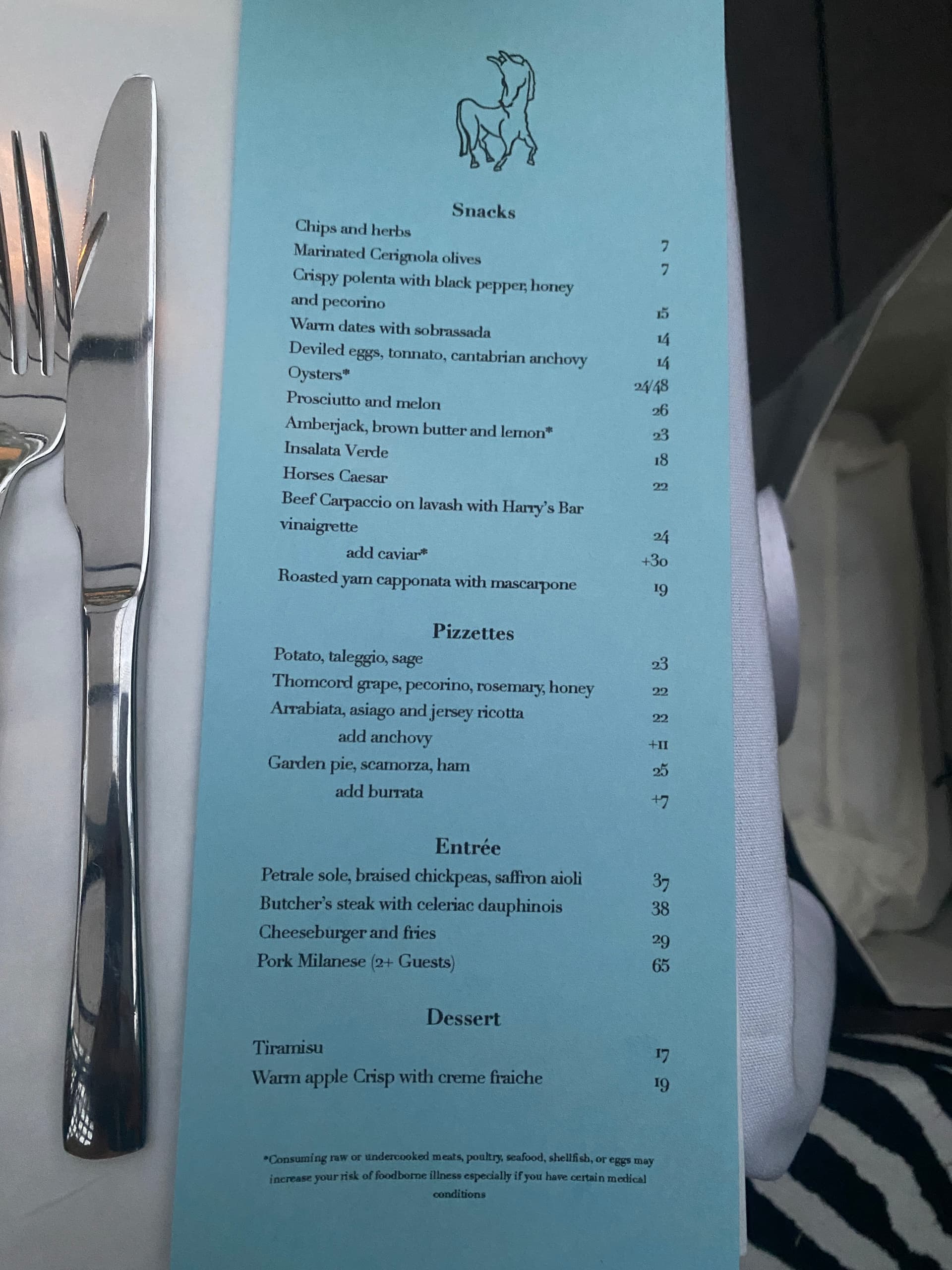 I’m still looking over my shoulder. I had a random Friday afternoon free and walked over to Horses to catch dinner at opening. They sat me in Ben’s Spot. I learned that you get to watch the famed Horses water drop races when they lift the bar to move in and out. I’ve only ever sat next to Ben, and even then I didn’t know about this pastime. Luckily I came out on top and was able to pay for dinner.