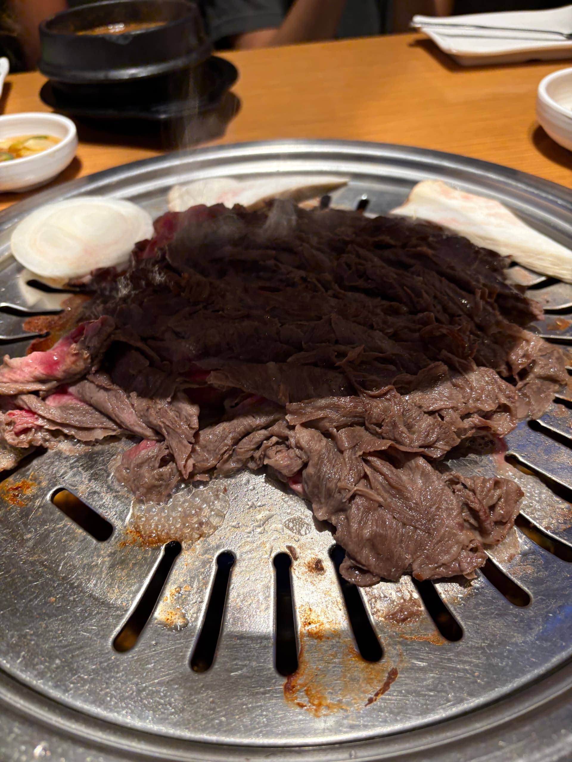 Mo Ran Gak Fullerton Saturday night. 15 parties in line ahead of us at 5:20. Took about 40 mins to sit. By the time we left around 7 there were 24 parties in line. If this place weren’t so crowded we would go here more often. At the top of our list for KBBQ slightly ahead of Yangmani. Excuse the terrible photos. The exhaust fan thing above created shadows. Best naengmyun. Stick with the combos for good deals. Brisket, galbi and pork belly were all excellent.