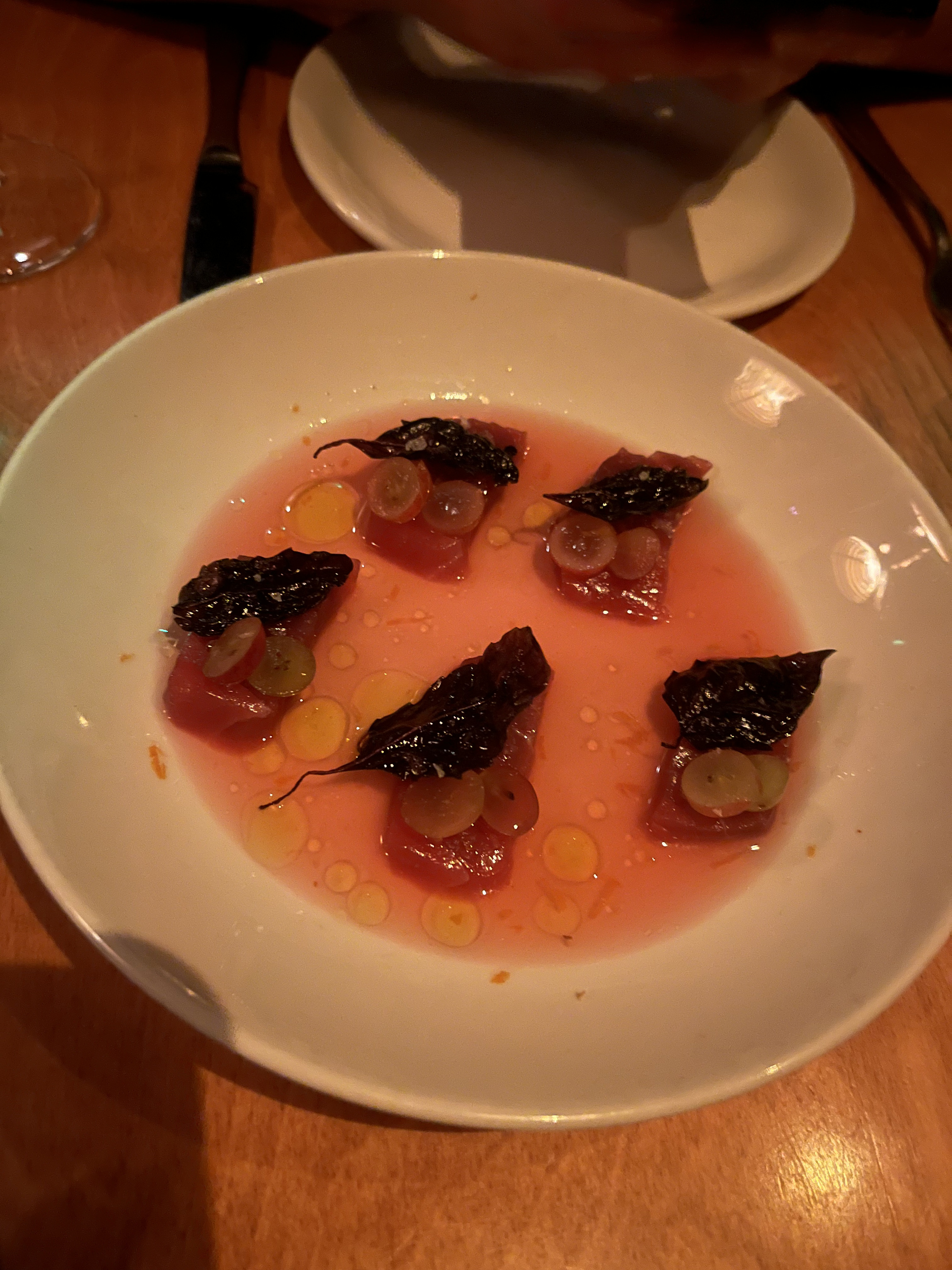 First were several starters: tuna crudo, an Erte standard