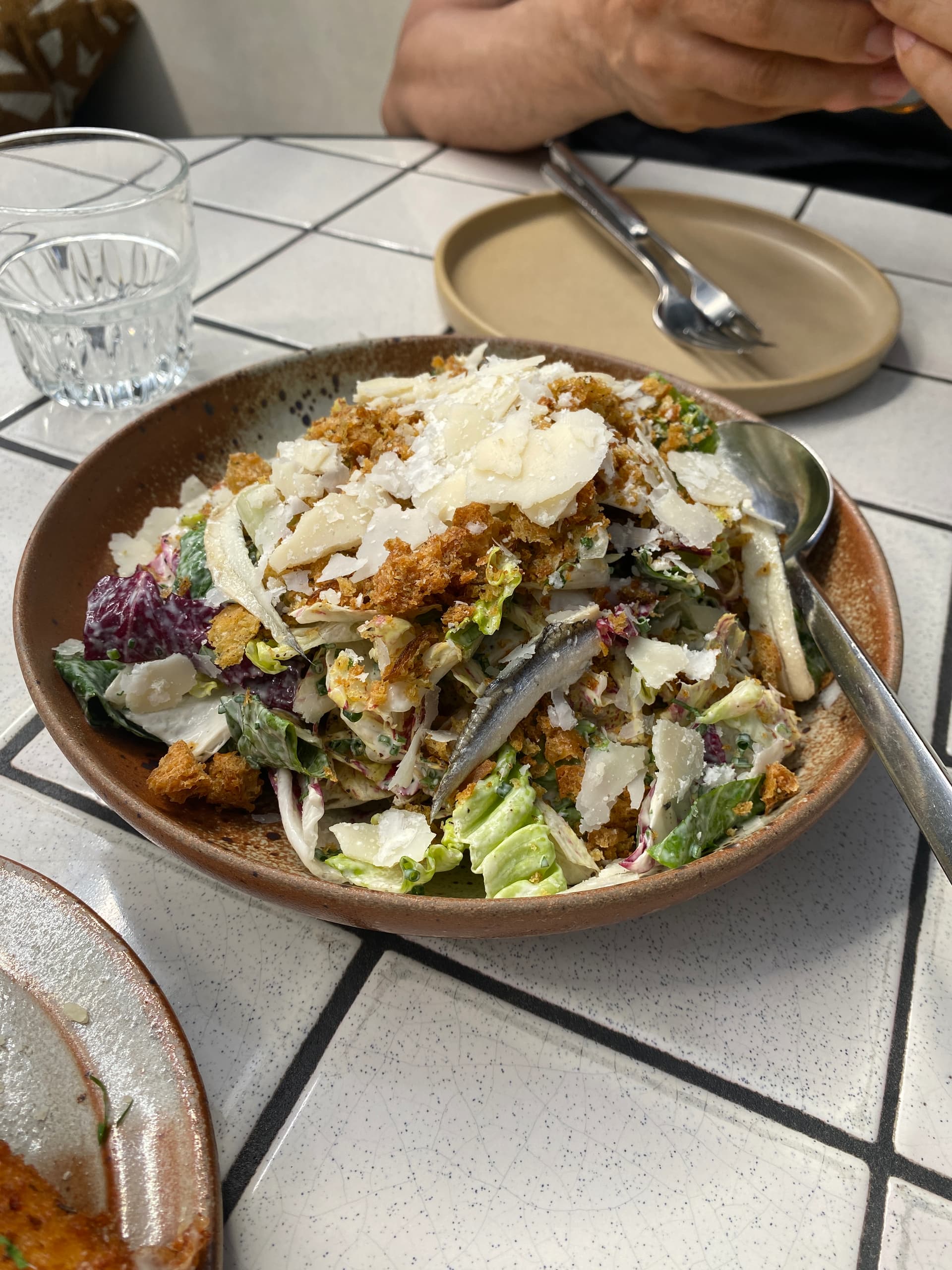 cosetta: caesar, smoked mozzarella sticks, and stepmother, and fungi pizza (not pictured). like the sammich, got some proper spice to it, and possible overly crunchy bread (almost crouton crust half an inch in). nice caesar.