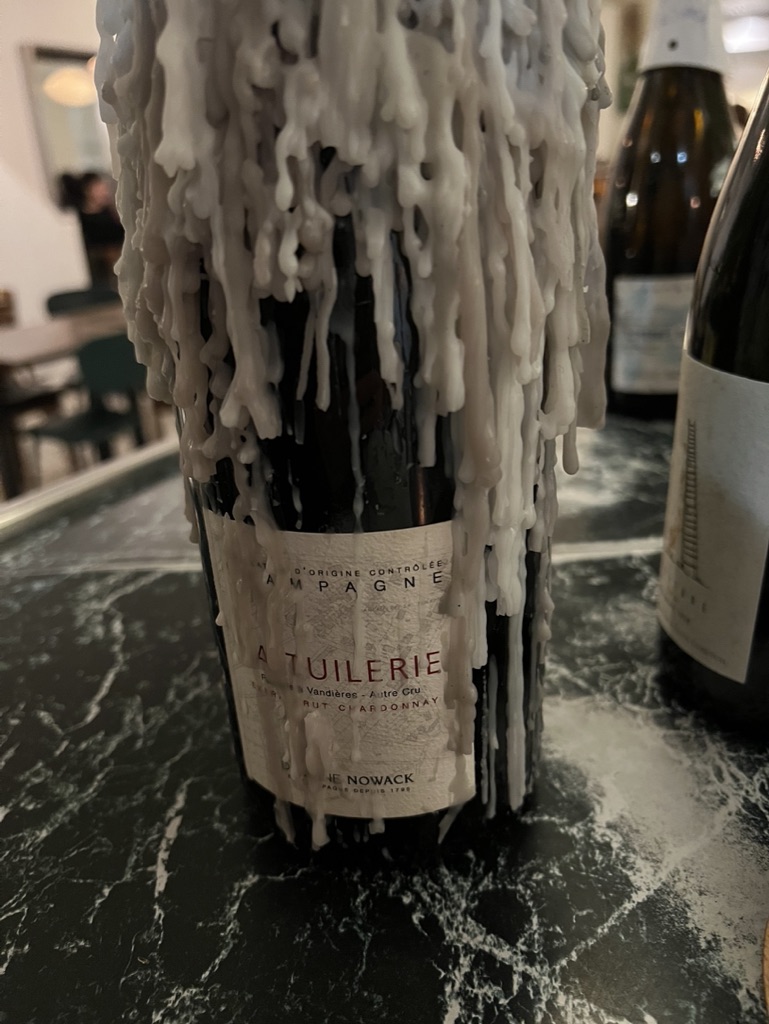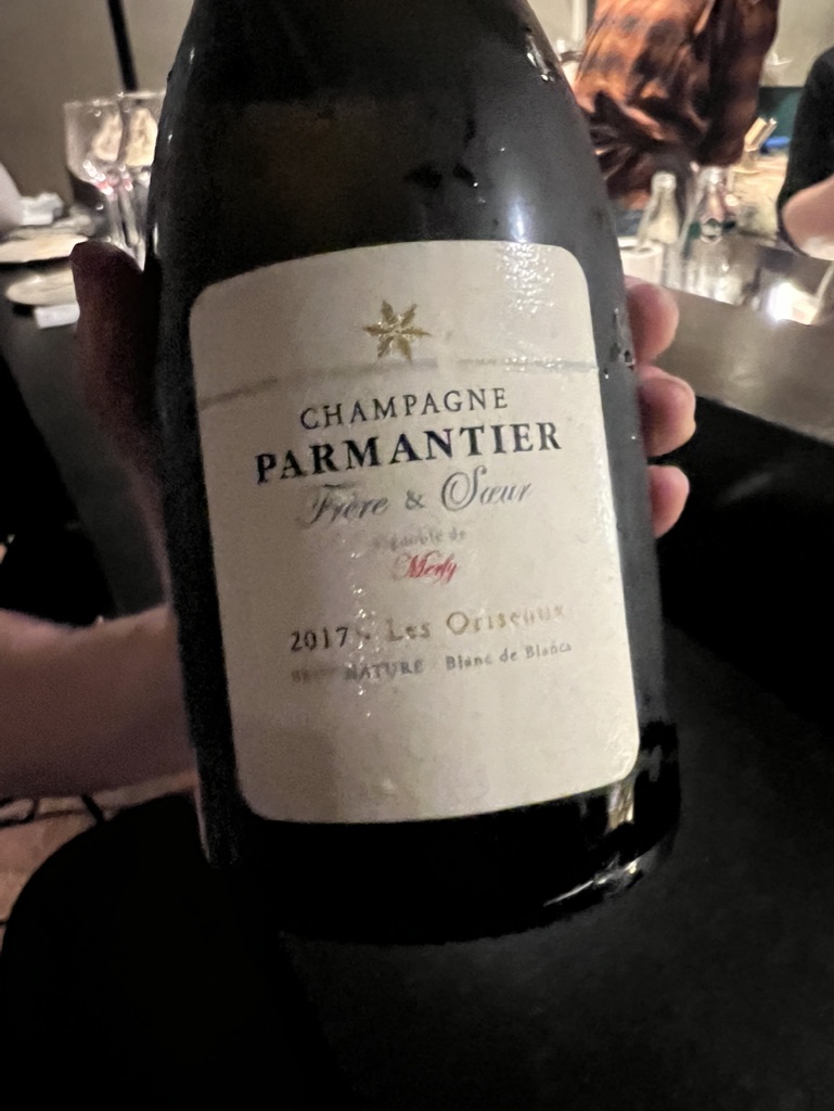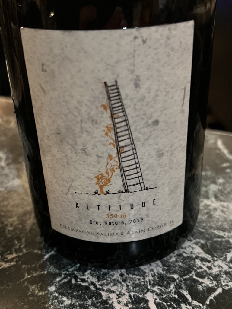 After a complimentary pour of Pascal Doquet’s Arpege solera, onto a bottle of Salima et Alain Cordeuil’s Altitude 350m 2018. I’ve been loving Cordeuil’s wine for the last year, especially the Altitude 320m blanc de noirs, but this Altitude 350m blanc de blancs was even better. The solar 2018 vintage is approachable now and proved great with the poached fish. Sensitive, focused, dry, and balanced, not austere - persimmon, meyer lemon, guava cream, bit of smoke and minerals, and nice structure.