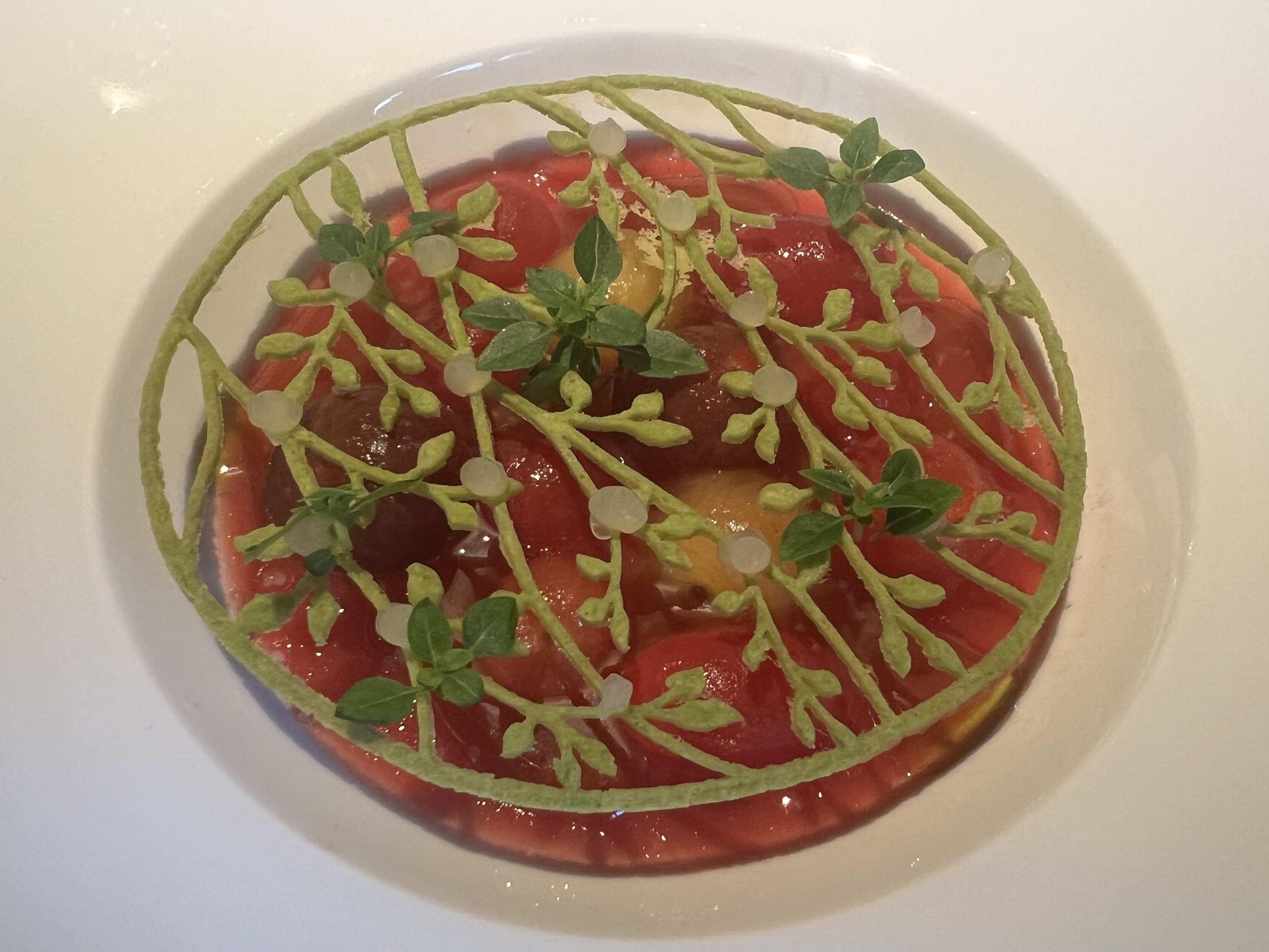 downstairs there is a tourist section with an odd mix of characters. one man ate quietly with his dog seated next to him. several families with young kids, one very argumentative with the hostess. one very loud table of couples next to me on one side babbling on about the price of DRC for the first half of the dinner then they got real awkwardly quiet after discussions about wars in the Middle East. and on the other side, an odd couple who seemed to be cosplaying acting wealthy. complaining loudly about the kitchen size in mid-tier hotel room in hawaii, how they sent their kids off to boarding school in london, then she later asked for ketchup and mustard for her chicken dish, and at the end his card got declined.