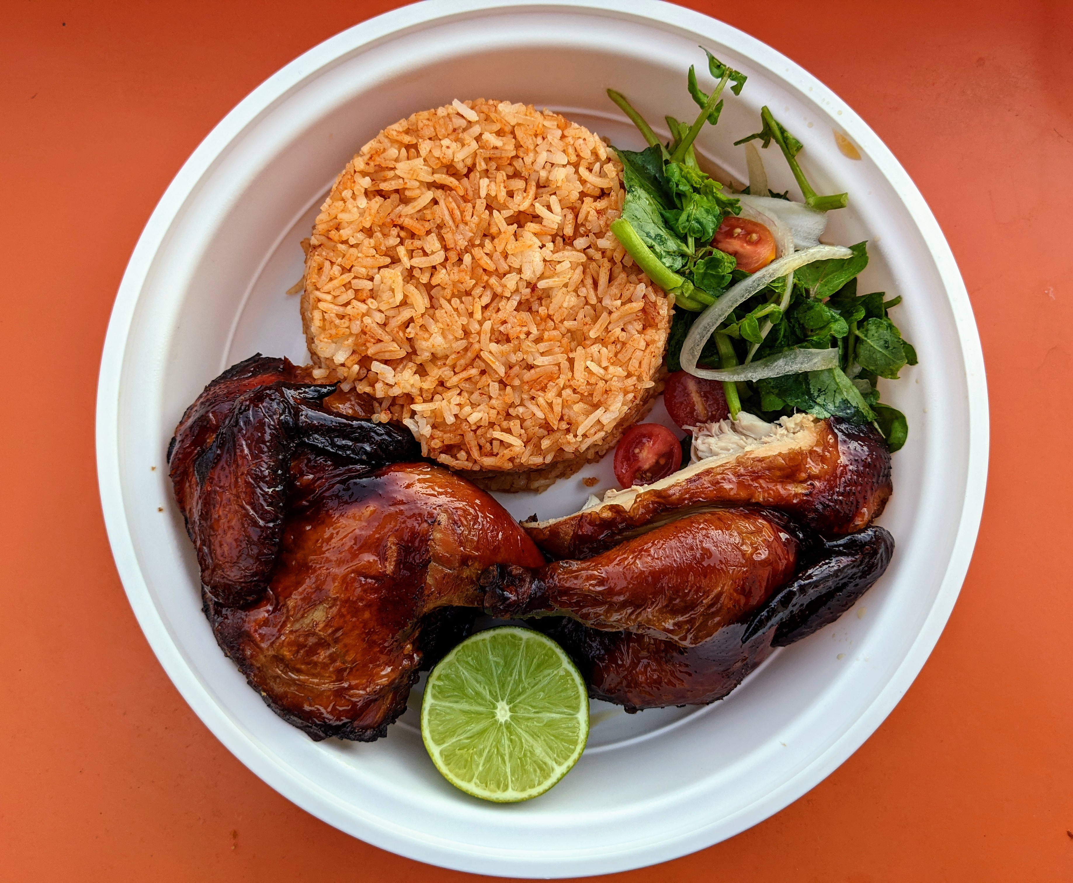 dark meat was nice and juicy, white meat could have been juicier. it was a little light on the five spice so it was nice that it came with extra five spice on the side.