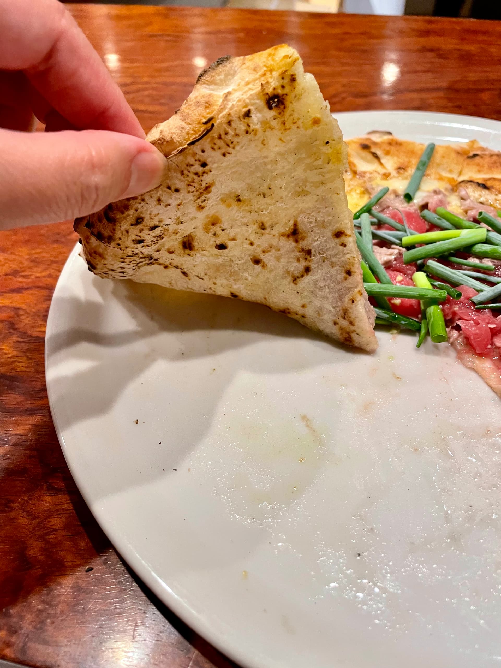 The puffy dough was quite nice. There was a slight fermentation taste to it that I found appealing and I loved that the cornicone puffed up the way it did. Nice chew and crisp…very airy.