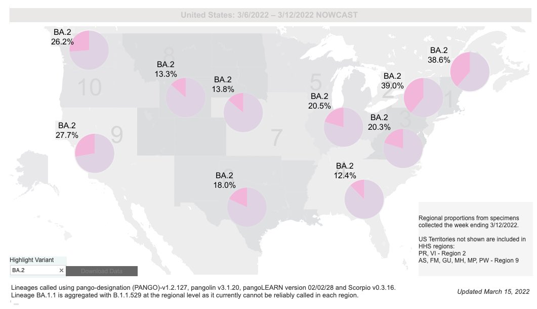 BA2 penetrations seems to be 50-60% as an key inflection point and the US is currently at about 25%. With the current doubling rate it will take 2-4 weeks until we will see most likely cases rise again significantly and most likely in the NE first
