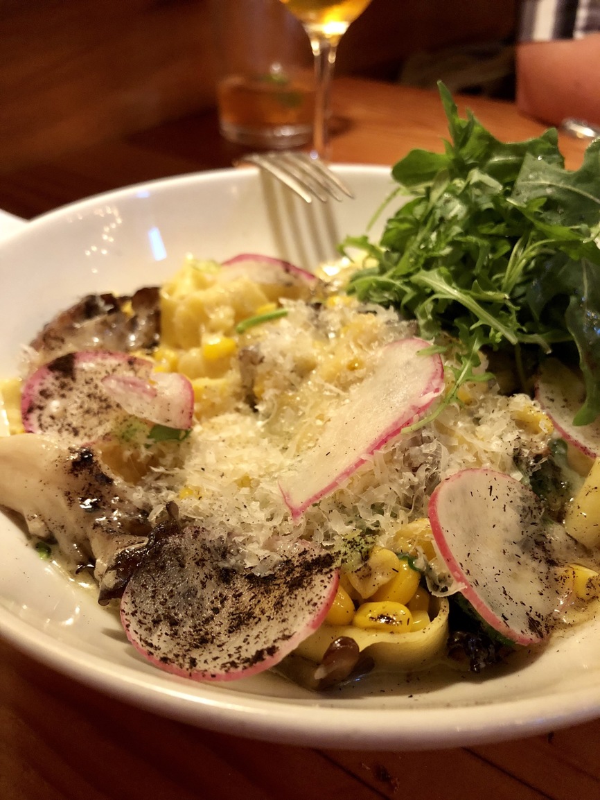 tagliatelle with tons of corn, too much butter, great mushrooms and cheese… i skipped the truffles but shouldn’t have.