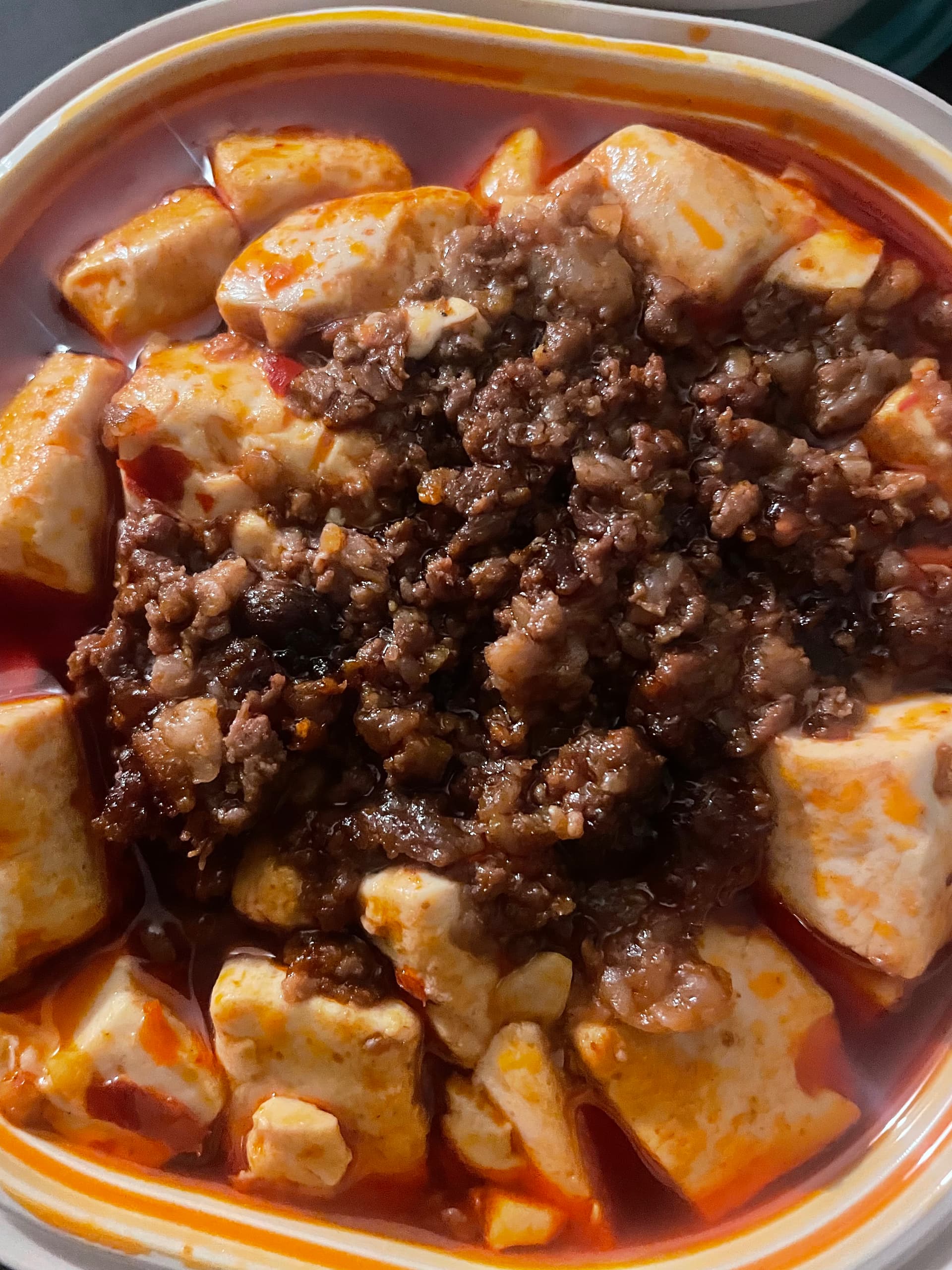 Can’t beat the price! Not bad at all. They forgot to take out the beef in the mapo.There’s the beef!