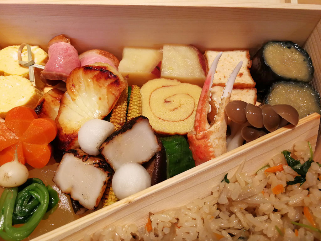 Dashimaki Tamago, Wild Mexican White Shrimp Shinjo, Dried Shiitake Niimono, Chrysanthemum Greens with Sudachi Citrus, Pickled Daikon Namasu, Seared Duck Breast, Black Cod Saikyo Yaki, Japanese Cucumber with Sesame and Salt, Winter Melon in Ginger Dashi, Satsuma Sweet Potato Mitsu-ni, Datemaki Tamago, Grilled Hokkaido Scallop Shioyaki, Koshihikari Rice with Root Vegetables, Snow Crab Tofu, Agedashi Eggplant, Honshimeji Mushroom Ohitashi, Snow Crab Claw Sunomono: