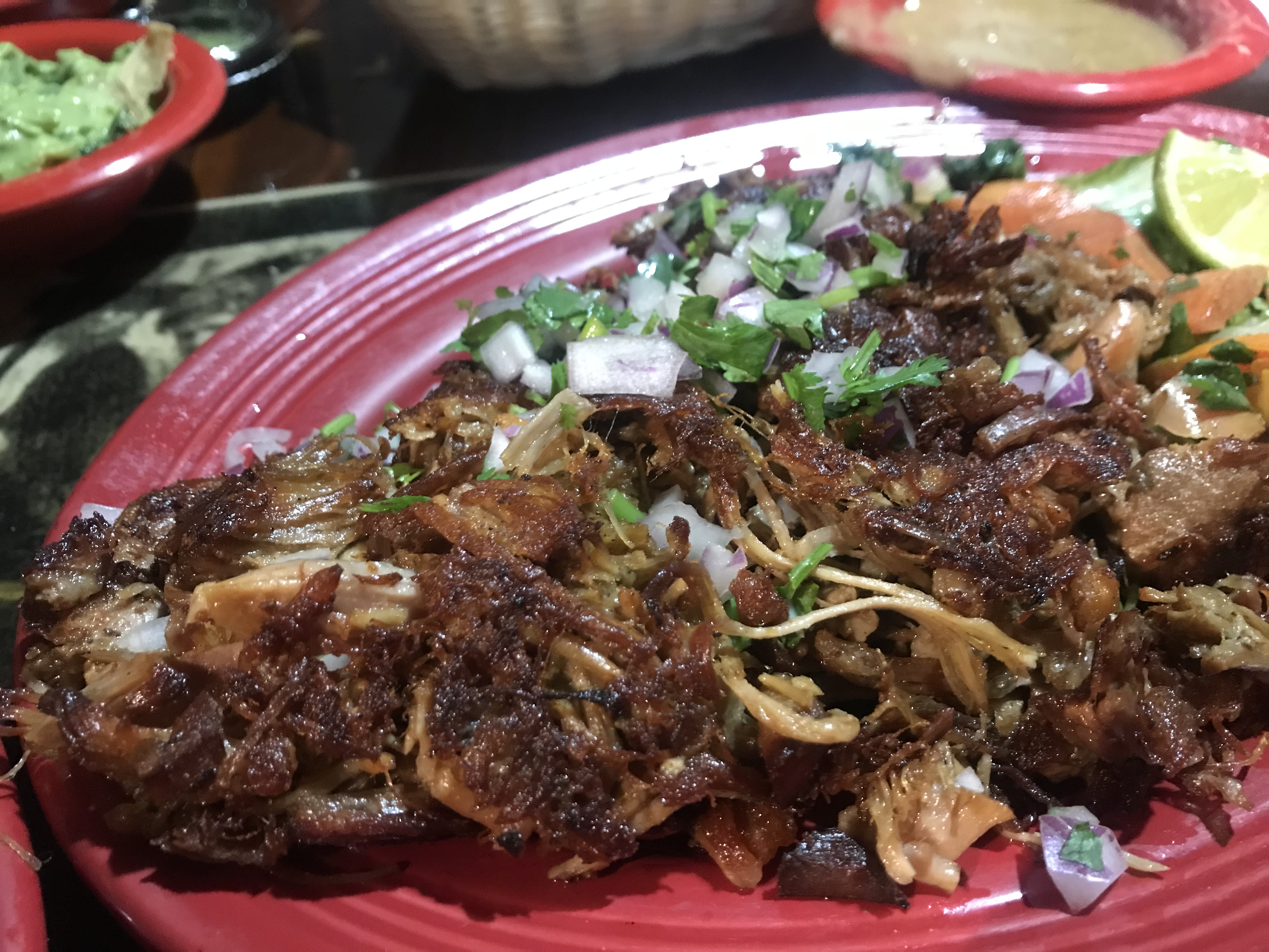 Went back today though since I’m back on my low-carb crap, I got my Plato De Pimpin, which is two side orders of meat, tonight it was carnitas and an order of guacamole and sour cream. They served them on separate plates, should’ve gotten them on the same plate (for fun ) my wife picked up the check and I forgot to look at how much they charged. It used to be $6 per side but she seems to think it went up to $8.