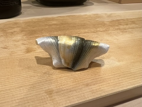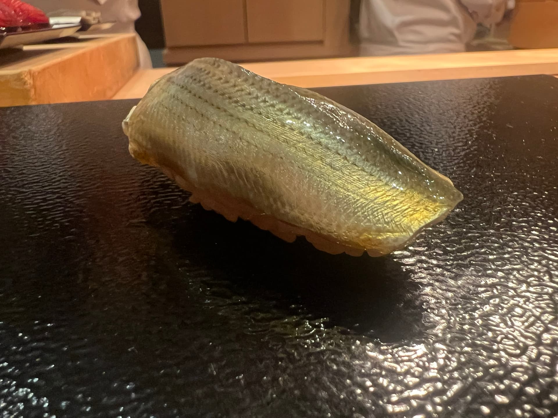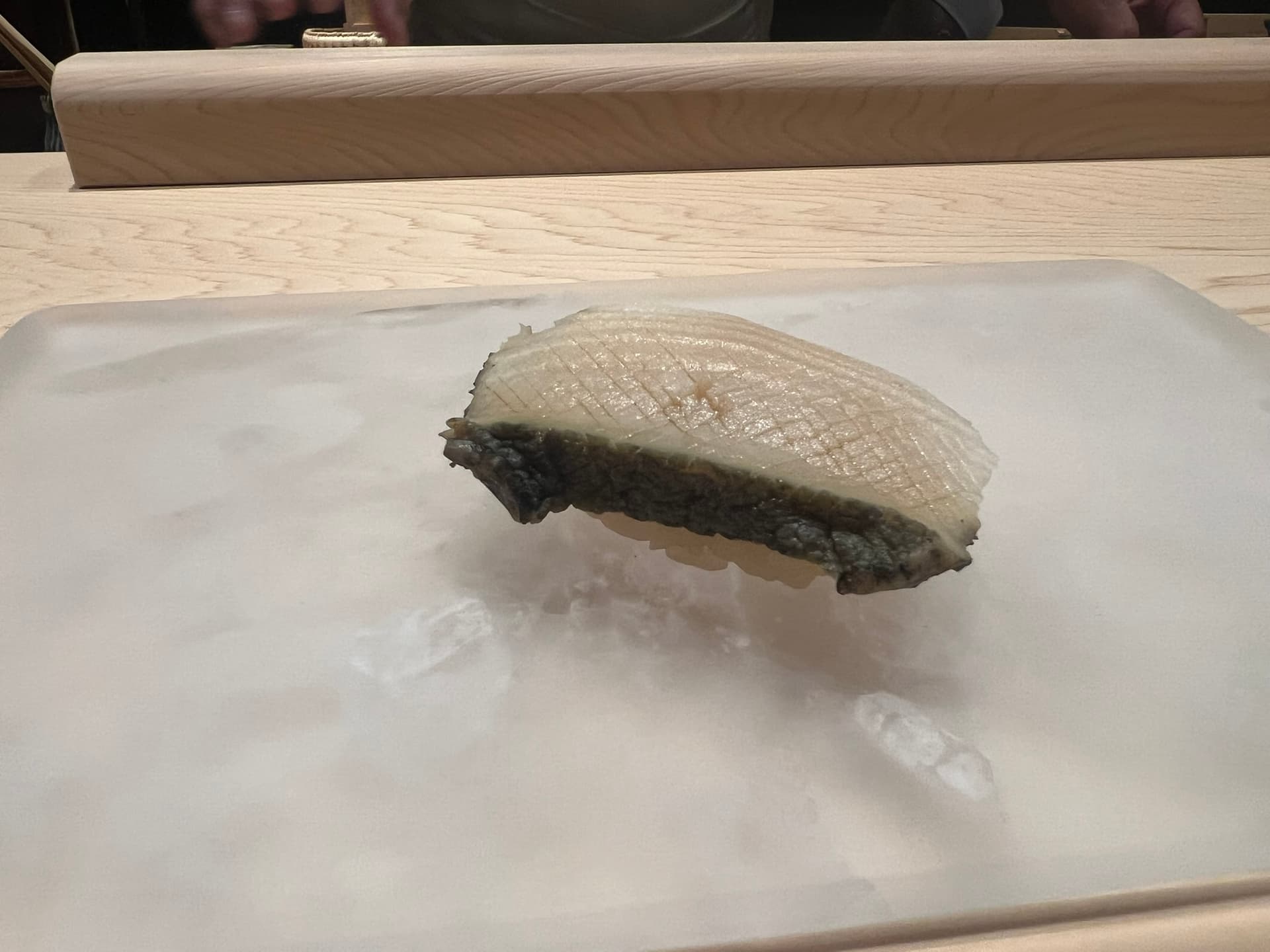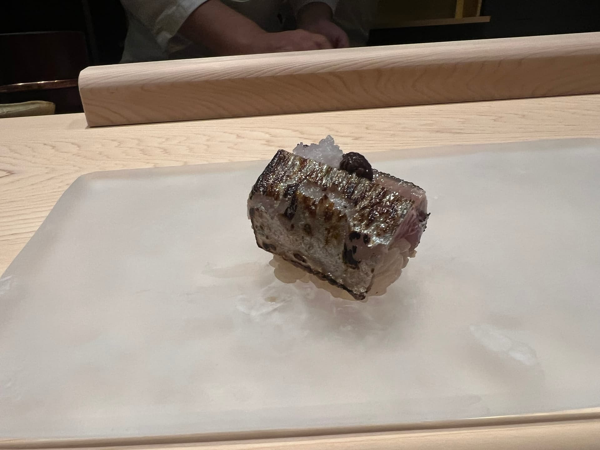 About 18 servings - 5 of which were starters. I didn’t love the opening shirasu and suzuki sashimi was fine, but the ultra creamy and cold botanebi sashimi was incredible. Grilled tachiuo on quite sour and warm rice was pretty good, then tuna sashimi with mustard and nori wasn’t really my taste.