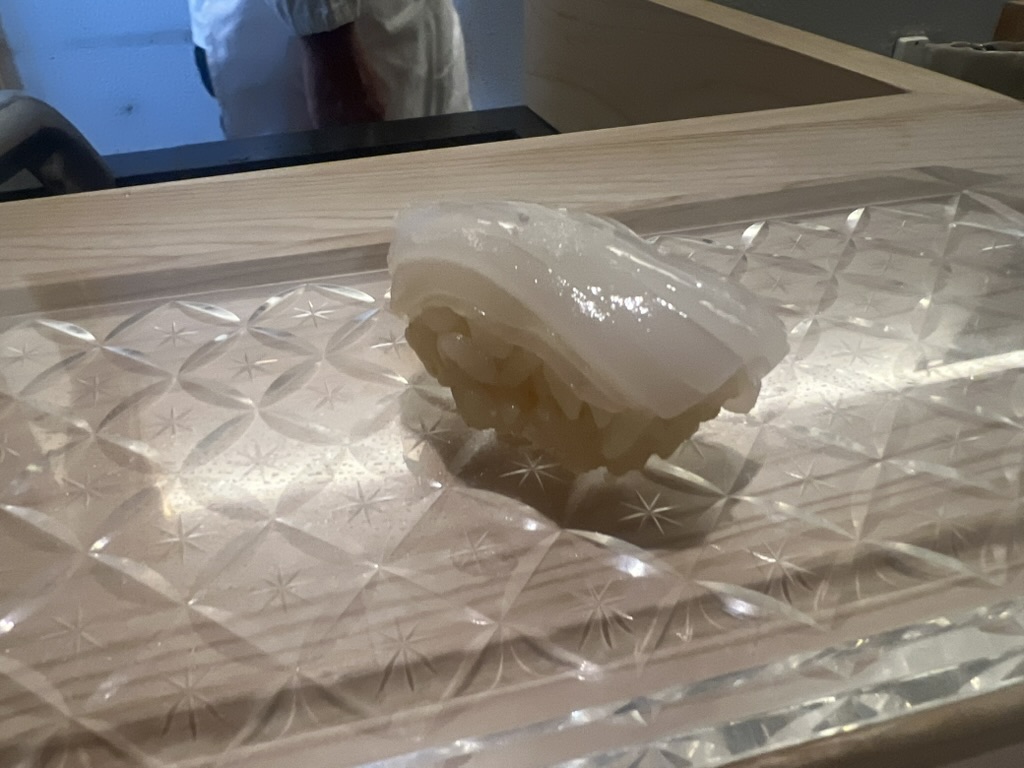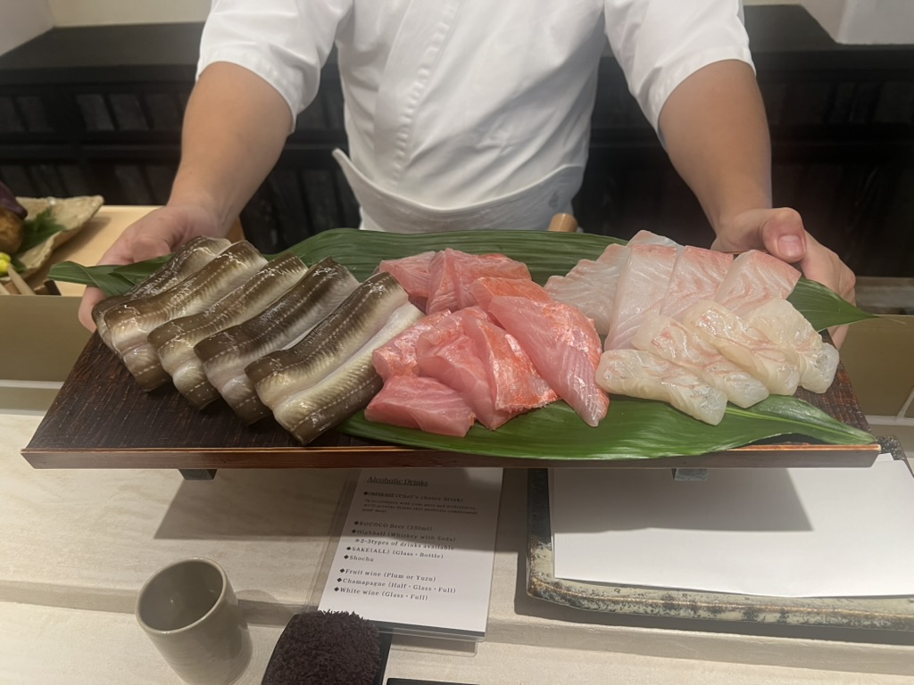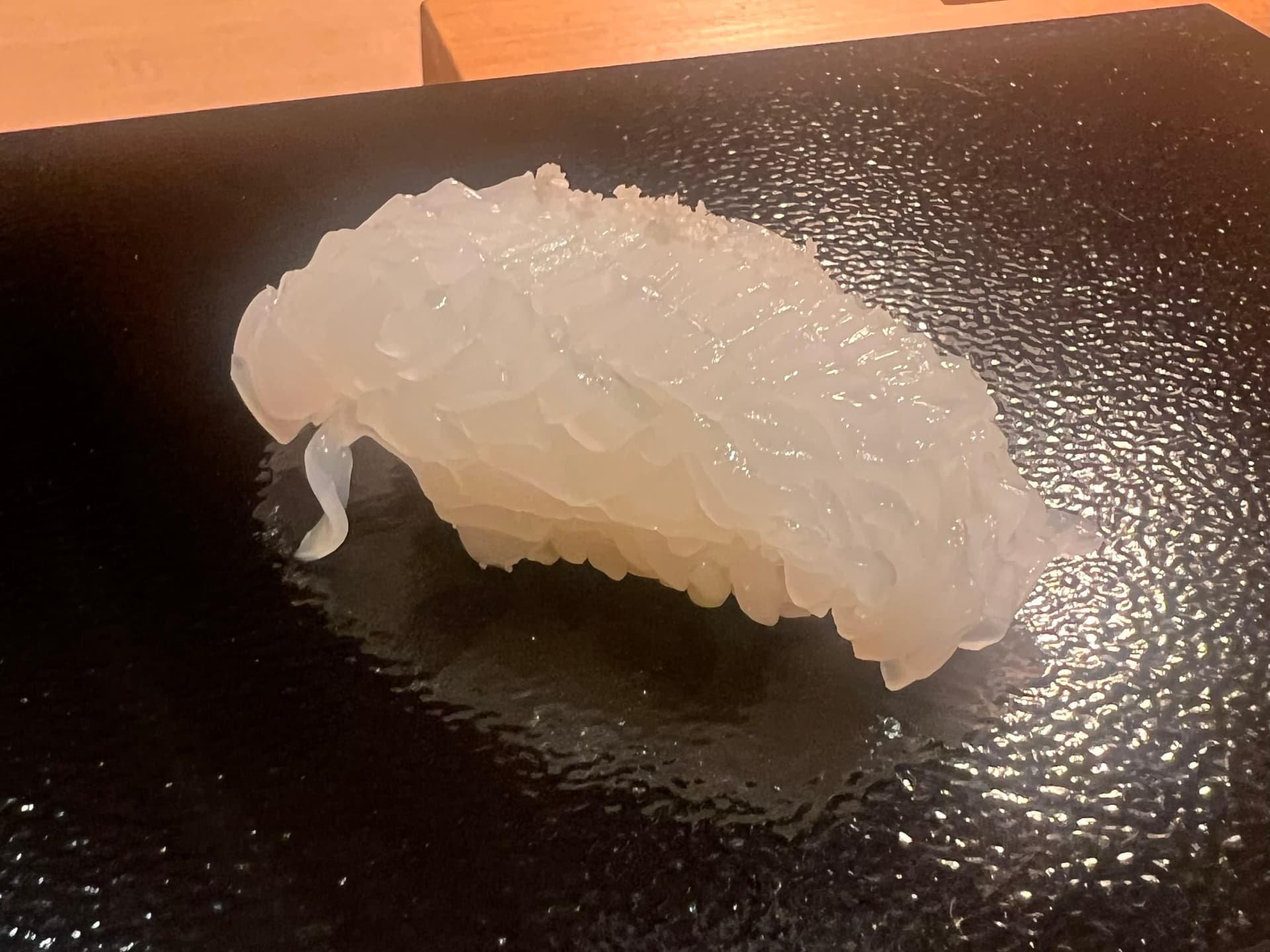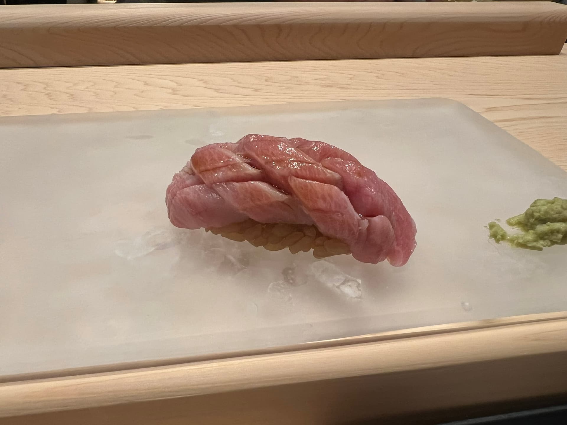 About 18 servings - 5 of which were starters. I didn’t love the opening shirasu and suzuki sashimi was fine, but the ultra creamy and cold botanebi sashimi was incredible. Grilled tachiuo on quite sour and warm rice was pretty good, then tuna sashimi with mustard and nori wasn’t really my taste.